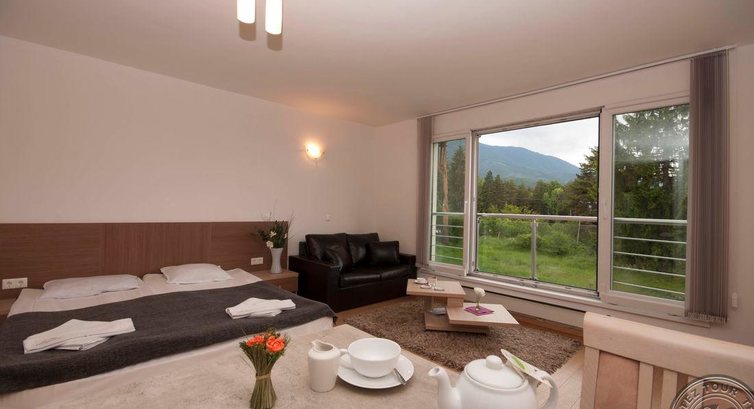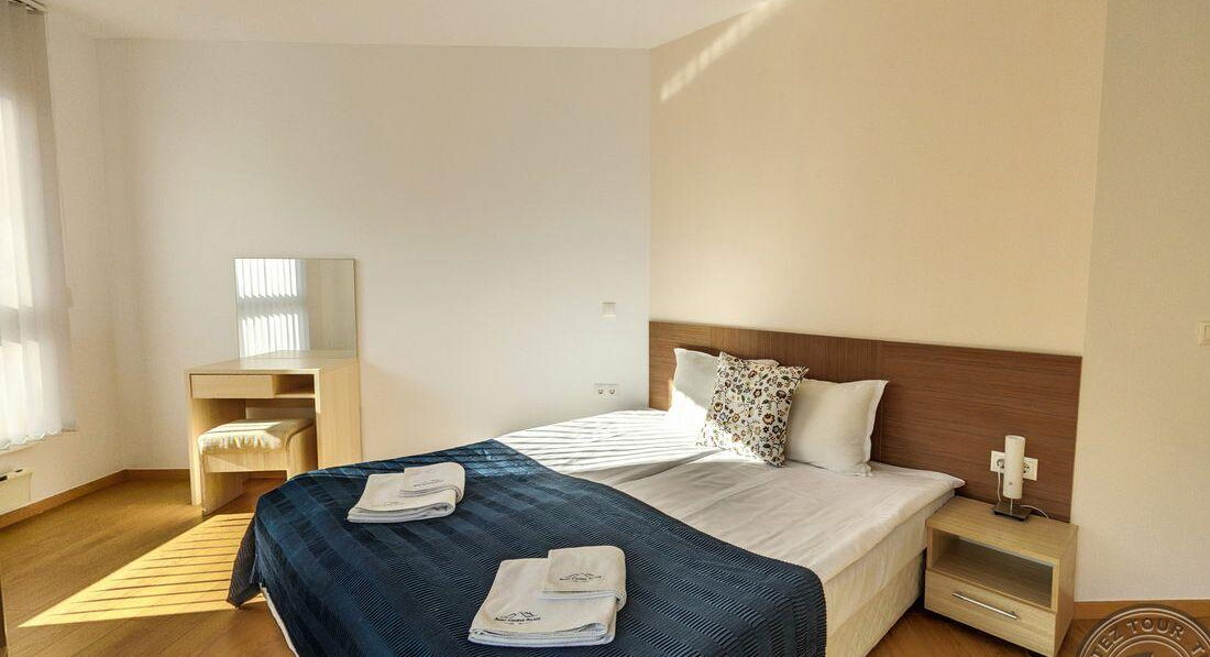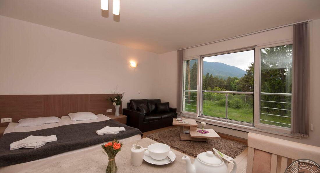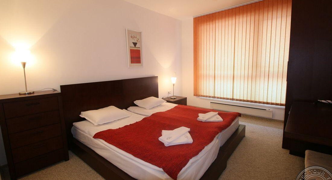 Цей готель розташований біля підніжжя гір Пірін, у місті Банско, за 300 метрів від станції гондольного витягу. Стильний, сучасний апартотель із великим вибором послуг. З вікон номерів відкривається панорамний вид на гори Банско, Пірін та Ріла. Збудований у 2007 році. Останній ремонт зроблено у 2012 році. Складається з трьох 6-поверхових будівель. Рекомендуємо для спокійного відпочинку.