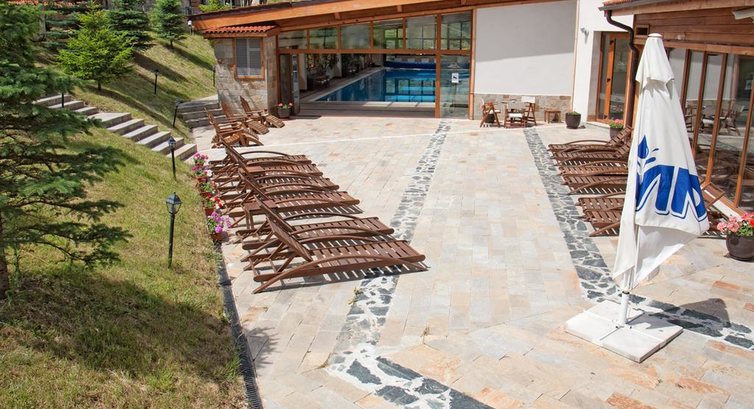 Готель розташований у відокремленому місці. Підходить для спокійного відпочинку. Критий басейн та ресторан знаходяться в основному корпусі, з корпусу апартаментів туди можна пройти лише територією, немає теплого переходу.