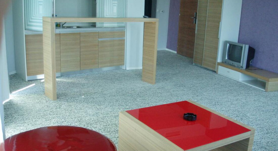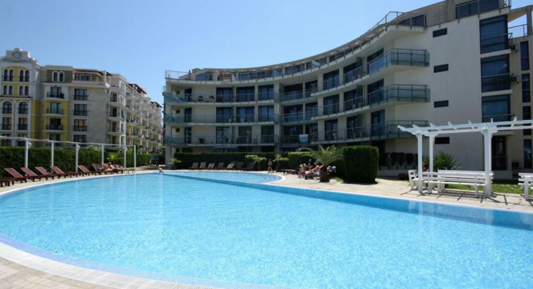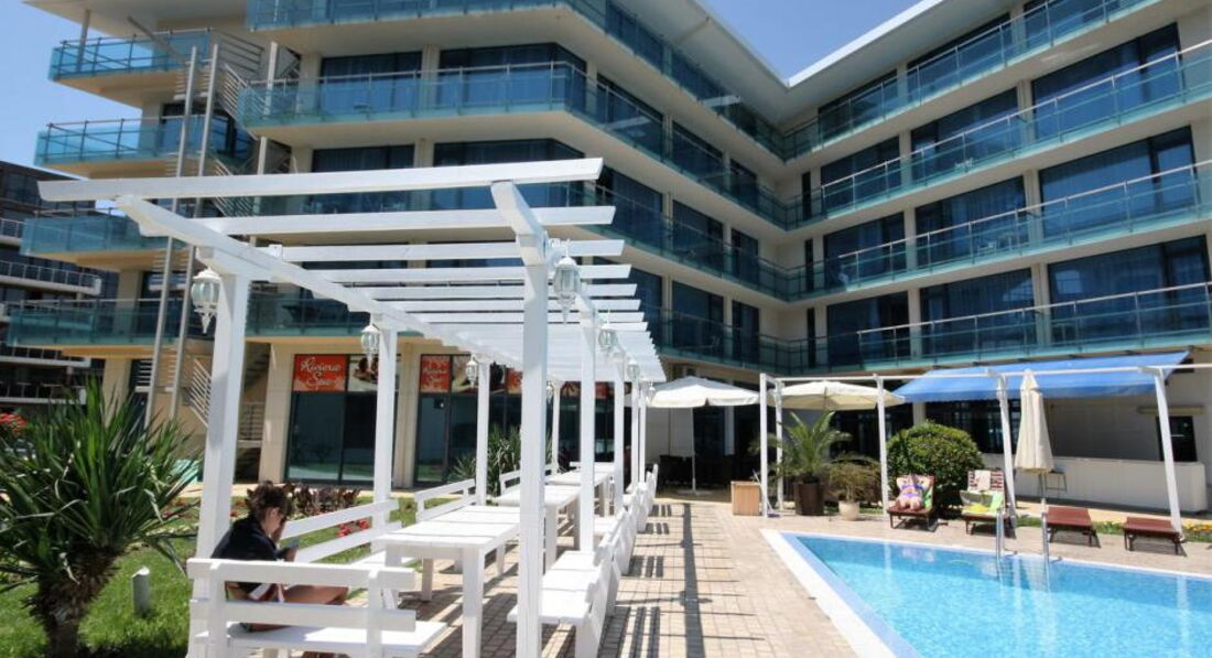 Этот отель принадлежит Riviera Blue, находится прямо напротив него, ресепшен общий, есть только управляющий. Уборку заказывают в Ривьере, питание там же. Здание представляет собой апарт-отель в тихом районе Солнечного берега. В апартаментах холодильник, кондиционер, кухня, большой балкон. Обслуживание номеров осуществляет Ривьера Блю. До моря минут 15, до остановки автобусов - 5. Отзывы по сервису и питанию смотрите среди отзывов отеля Ривьера Блю.