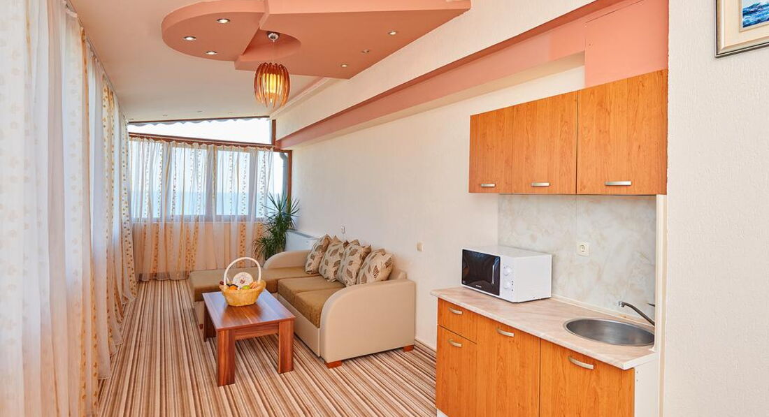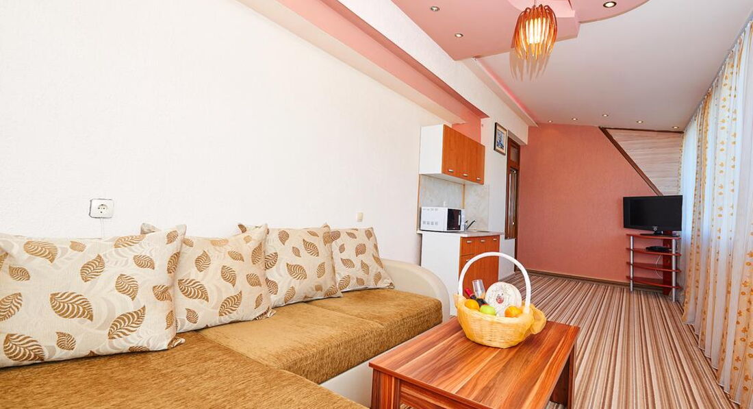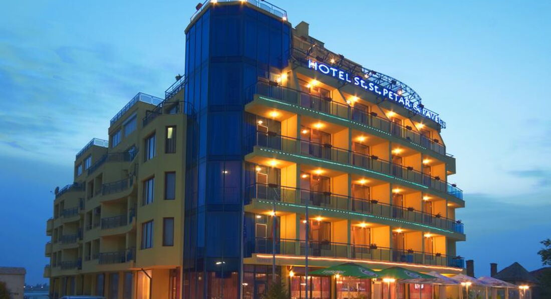 Отдыхали в отеле Св. Петр и Павел почти целый месяц июль-август 2014. Поскольку отзывов об этом отеле не очень много, решила поделиться информацией. Мы жили в апартаментах на 2 этаже. Апартаменты состоят как бы из двух номеров – студии и обычного номера. В той части, которую мы называли кухней, находится диван, журнальный стол, кухонный уголок стулья и маленький столик. Есть маленький холодильник, чайник, утюг. Два спальни с маленькими телевизорами и два душа в одном номере и другом. Получается как квартира с двумя смежными комнатами. Нам было комфортно и просторно. Один балкон выходит на море, а второй – на торец Гранд отеля Поморье. С пастельным бельем все нормально – меняют и белье и полотенца. В душе оставляют мыло мал. кусочки и гель д/душа. Мы оставляли горничной каждый день по 2 лева, поэтому у нас убирались сносно – пылесосили и мыли сантехнику. Если деньги не оставлять, думаю, будут убираться хуже (это не Турция). Горничные не понимают по-русски ни слова, на рецепш. сотрудники понимают по-русски и общаются. Хозяева каждый день присутствуют с утра до вечера. Если много народа на завтрак и на обед, помогают даже убирать посуду. Очень удобно то, что на первом этаже имеется ресторан. Можно поесть в любое время. Готовят нормально в соответствии с ценами. Мы как-то решили поесть в другом месте. Вроде ресторанчик выбрали нормальный. Но они проходящим людям впаривают вместо одного блюда – другое. А когда хочешь есть и ждешь в течение получаса, уже не отказываешься. Так что – совет постараться питаться в одном месте.