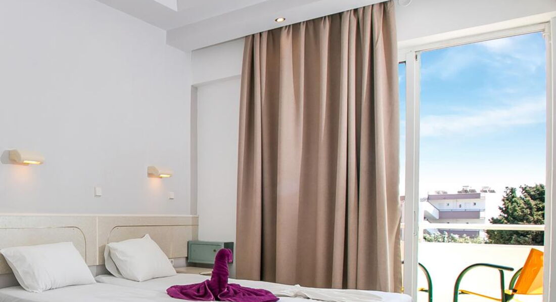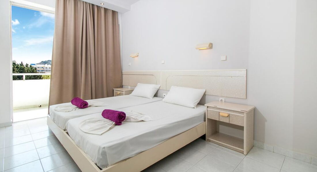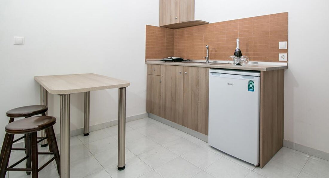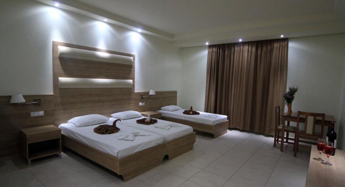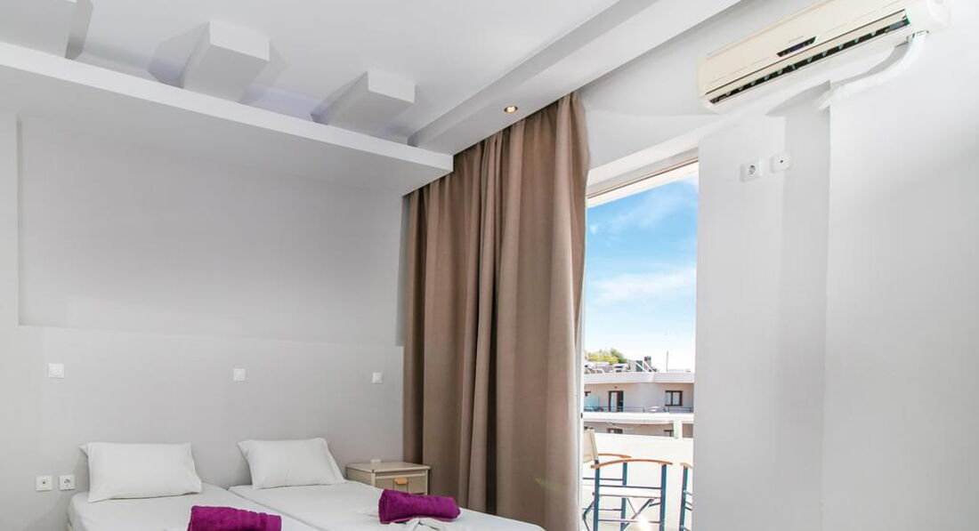 Типи номерів: • 8 Studio (20 м2., макс. Розм. 3 чол., Основний корпус, одна спальня та ванна, обладнаний кухонний куточок, вікна та балкони у всіх номерах). • 7 Superior Studio (25 м2, макс. розм. 3 чол., дод. корпус, одна спальня та ванна, обладнаний кухонний куточок, вікна та балкони у всіх номерах).У номері: • душ • електрочайник • кондиціонер (7 євро на день) • міні-холодильник (безкоштовно) • електроплита • стіл і стільці • wi-fi (платно) • сейф (платно)