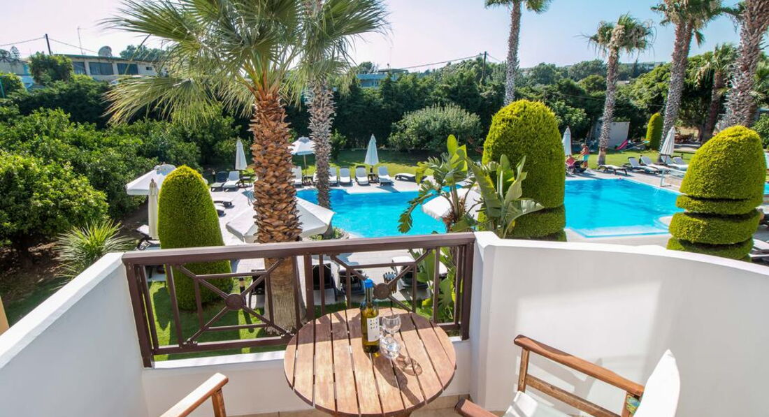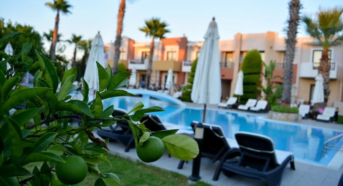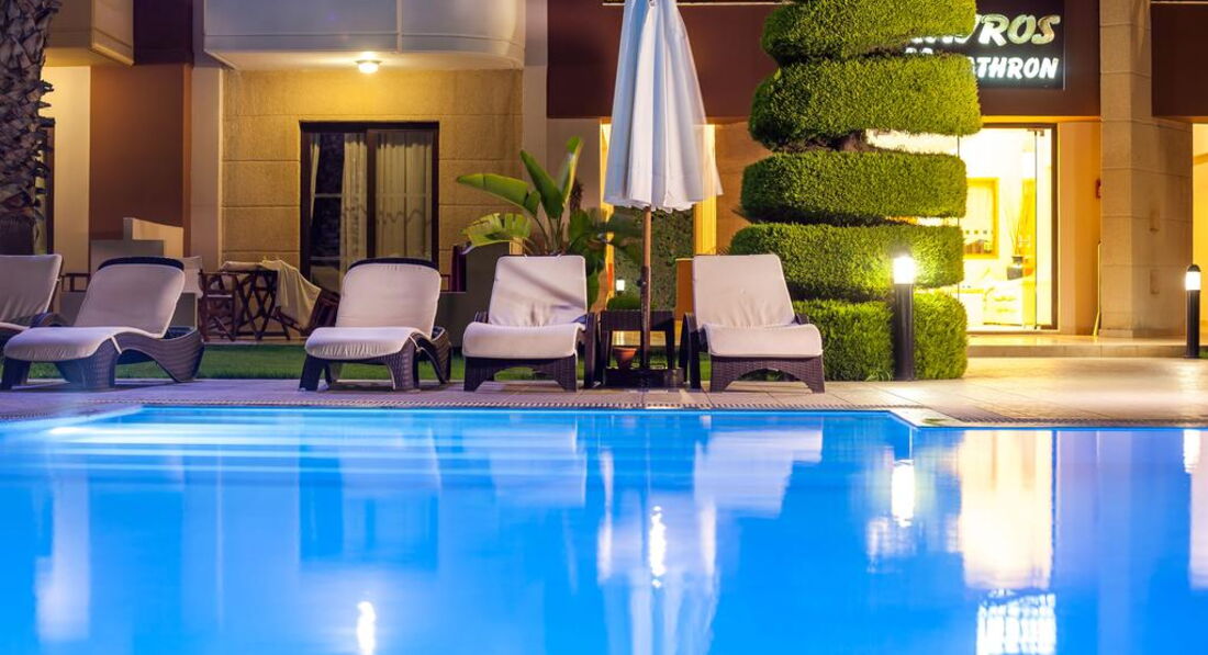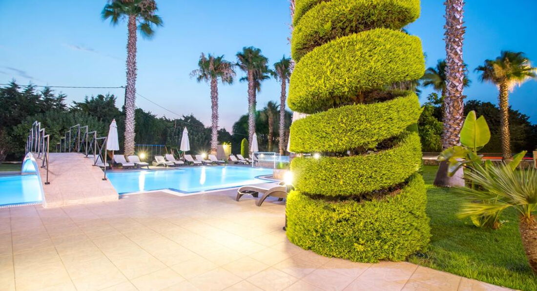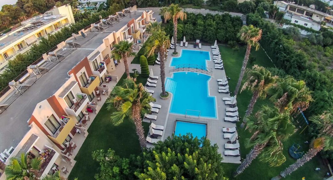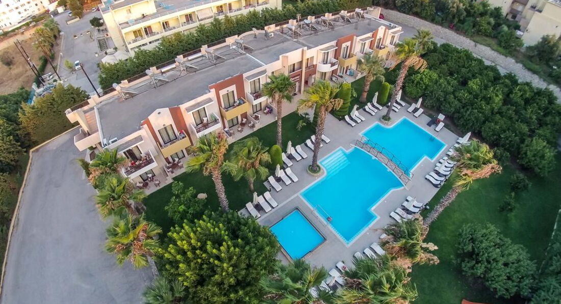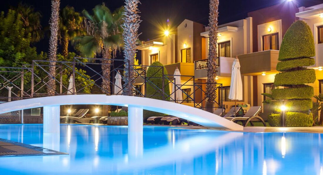 Територія та послуги: паркування є басейни: 1 (відкритий із прісною водою) Wi-Fi безкоштовно Розваги та спорт: водні види спорту платно (на пляжі) Для дітей: дитячі басейни: 1 дитячий майданчик (під відкритим небом, покриття – трава) дитяче ліжечко: за запитом, безкоштовно Живлення: RO Пляж: піщано-гальковий (в 350 м, через дорогу від готелю, на території Aldemar Paradise Village & Amilia Mare) вхід у море: дрібна галька (пісок) на пляжі парасольки, шезлонги: платно на пляжі рушники: ні До оплати приймаються кредитні картки: Visa, MasterCard, Maestro, Diner's.