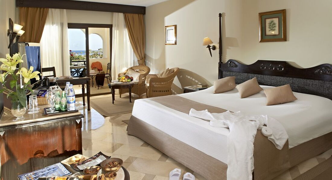 Тот факт,что горящих туров в этот отель просто не бывает,максимум скидка при раннем бронировании говорит о многом.Сервис и обслуживание на очень высоком уровне,разноязычный персонал.Территория очень большая и ухоженная с собственным садом и искусственной рекой,есть несколько бассейнов,но по-моему вода в море теплее.Пляж большой,песочный ,с очень комфортным входом,вода чистейшая.Лежаков достаточно и все в идеальном состоянии.Питание тоже на очень высоком уровне,все вкусно и разнообразно,не вижу смысла описывать блюда.Есть дополнительные рестораны,нам понравился японский и французский.Единственный минус это алкоголь местного производства не высокого качества,хорошо,что мы пару бутылок хорошего вина взяли с собой.Анимация отличная,возле пляжа проводят разные игры,от волейбола до гимнастики.Вечером после ужина устраивают разные представления и шоу,были восточные танцы,живая музыка,а на лобби вообще стоит рояль,я такого даже не могла представить.Муж говорит,что спортзал очень не плохой,он у меня спортсмен и оборудования ему хватало,он не ожидал.Короче в отеле всегда есть чем заняться,а вот рядом с отелем ничего интересного нет,надо ехать в город на такси.Были на нескольких индивидуальных экскурсиях.Увидели Луксор и Райский остров посетили только с мужем,было очень романтично.Туры заказали по интернету у Mido Bikham.Контингент отдыхающих очень разный,много немцев,русскоязычных и местных не много,все очень культурно и вежливо.К номеру претензий нет,кровать удобная,я обычно не сразу привыкаю спать в чужом месте,а тут было все хорошо,сантехника нормальное,все работало,убирали хорошо.Советую взять что-то от комаров,в отеле их травят конечно,но за пределами более чем достаточно.И если часто будете выезжать за пределы отеля местная симка тоже не помешает.Могу точно сказать,что этот отель пожалуй не один из лучших,а точно лучший в Египте на сегодня момент,уж точно не пожалеете посетив его.