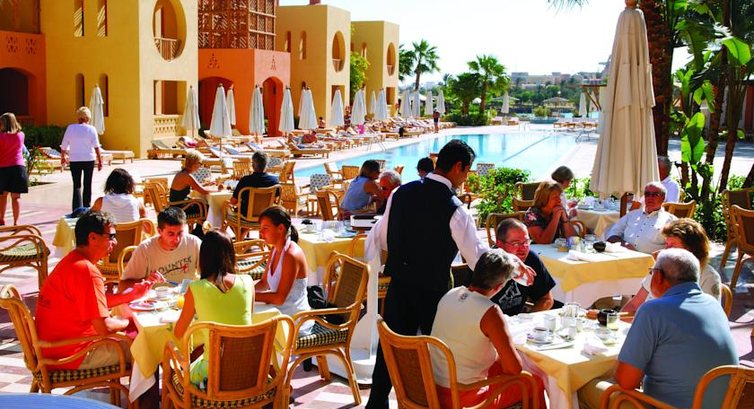 Завтрак и ужин проходит в основном ресторане (шведский стол) с ресторанной сервировкой (вспомните какой вилкой нужно есть какое блюдо). На завтрак официанты подают свежесваренный кофе, ассортимент еды довольно разнообразный. В салаты можете добавлять любые ингридиенды по своему вкусу с любой заправкой (всё нарезано). Обед предполагает заказ блюд по меню. По-вашему желанию вы можете поужинать в другом соседнем отеле (как гостю Steigenberger вам будет сделана скидка на ужин, предупредите об этом свой ресепшн).