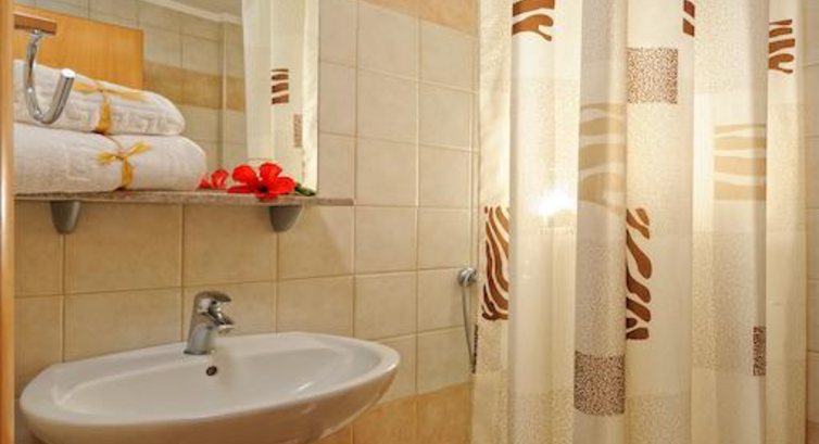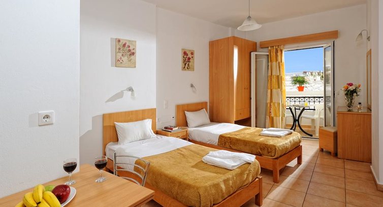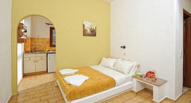 Типи номерів: • 5 Economy Studio (15 м2, 0-2 поверх, вид на сад, басейн або околиці, макс. розм. 2 чол., одна спальня та ванна, обладнаний кухонний куточок, балкон – у 3 номерах, тераса – у 2) • 9 Superior Studio (15 м2, 1-2 поверх, вид на гори або околиці, макс. розм. 2 чол., одна спальня та ванна, обладнаний кухонний куточок, балкон у всіх номерах) • 2 Standard Studio (20 м2, 0-1 поверх, вид на сад, басейн або околиці, макс. розм. 3 чол., одна спальня та ванна, обладнаний кухонний куточок, балкон – в 1 номері, тераса – в 1-му ) • 7 One-Bedroom Apt (35 м2, 0-2 поверх, вид на сад, басейн або гори, макс. розм. 4 чол., одна спальня, вітальня та ванна, міжкімнатні двері, обладнаний кухонний куточок, балкон – у 5 номерах , тераса – у 2-х)У номері: • душ • фен (за запитом) • електрочайник • індивідуальний кондиціонер (тільки у One Bedroom Apartment, 7 євро на день) • міні-холодильник (безкоштовно) • праска та прасувальна дошка (за запитом) • чай, кава, цукор (платно) • wi-fi (безкоштовно) • сейф (платно)