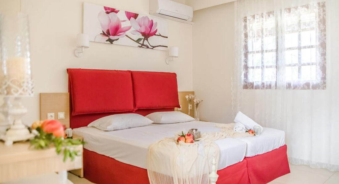 Типи номерів: • 15 Standard Studio 2 pax (15 м2, 0-1 поверх, вид на сад чи околиці, макс. розм. 2 чол., одна спальня та ванна, обладнаний кухонний куточок, балкон – у 10 номерах, тераса – у 5) • 2 Standard Studio 3 pax (20 м2, 0-1 поверх, вид на сад або околиці, макс. розм. 3 чол., одна спальня та ванна, обладнаний кухонний куточок, в 1 номері - балкон, в 1- тераса) • 8 One-Bedroom Apts (35 м2, 0-1 поверх, вид на сад, басейн або околиці, макс. розм. 3 чол., одна спальня, вітальня та ванна, міжкімнатні двері, обладнаний кухонний куточок, балкон – у 6 номерах , тераса – у 2-х)У номері: • душ • туалетне приладдя • фен (за запитом) • індивідуальний кондиціонер (платно) • електрочайник • міні-холодильник (безкоштовно) • праска та прасувальна дошка (за запитом) • wi-fi (безкоштовно) • сейф (платно)