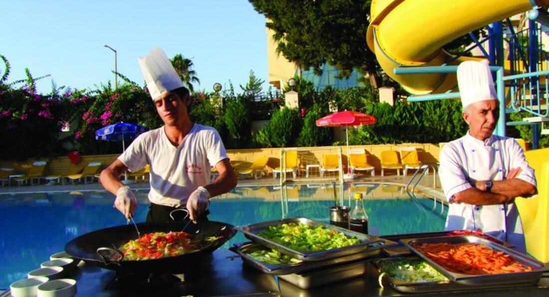 Кто едет в Турцию для моря и активного отдыха то этот отель для вас.Многие жалуются на питание и обслуживание в данном отеле,это бюджетный отель 4 звезды.За такую сумму путевки даже очень хороший отель.В конце концов вы же не кушать едете в Турцию и если ходить и придираться до всего то естественно можно найти кучу всего плохого.Смотрите позитивно .Море рядом,голодными не останетесь,обслуживающий персонал хороший.Все говорят и понимают по русски.Анимация только подкачала.Её практически не было.