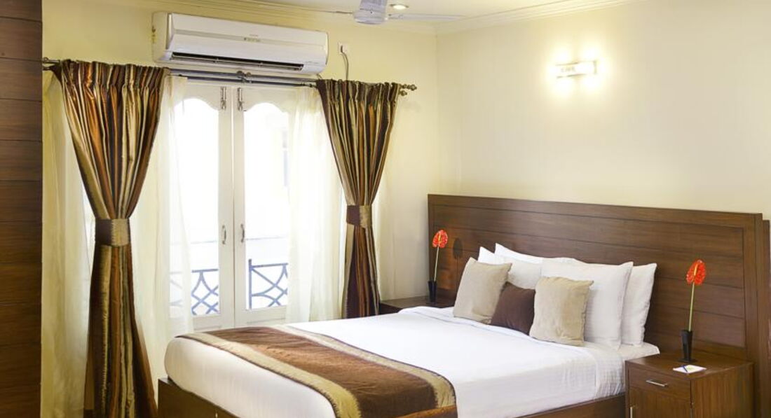 Отдыхала в Гоа в первый раз, одна. Заселение прошло хорошо (до 12:00), мои вещи в номер унес портье. Меня порадовал мой красивый просторный номер с огромной двуспальной кроватью, порадовало наличие балкона. Удивили высокие потолки (в одной части номера где-то 3 метра, в другой части, над кроватью, все 5 метров), которые создавали впечатление хоромов)))Несколько огорчило отсутствие ванной или поддона для душа в ванной комнате (то есть сверху просто прикреплён душ, из которого идет вода, а внизу просто поли вода стекает в сливное отверстие в полу), но это не страшно.