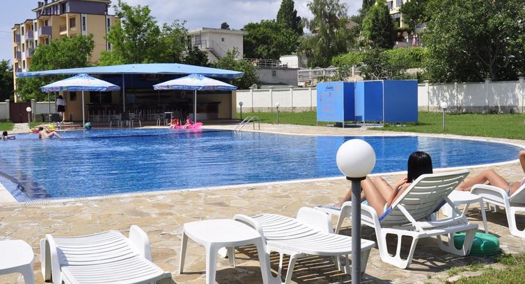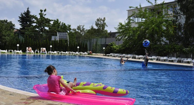 Больше всего мне понравилась огромная ,зеленая территория отеля.Номера аккуратные,без излишеств.До пляжа минут 10 идти (если налево свернуть).Есть спуск прямо напротив отеля.Это ступенек 70 вниз.Но удобно.Море потрясающее.Отель находится между городом и курортом Золотые Пески.Цены в ресторанчиках приемлемые.Но если уйти на 1 км. налево или направо уже кусаются.Хотя мы с доченькой были 3 года назад. Кухня в отеле мне не понравилась.Конкретно в этом отеле готовили все вместе .Отдельно мяса или курицы не было.Своеобразная каша.У нас было все включено,но ежедневно приходилось ходить с ребенком в ресторан в городе и там ее кормить. В то время в Болгарии был жуткий кризис.Поэтому и болгары относились к отдыхающим ужасно.(не важно русский ты или англичанин).