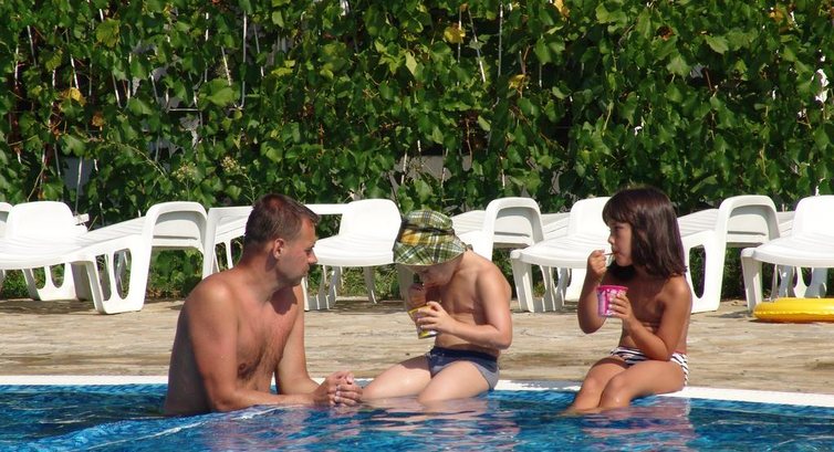 о плюсах отеля: довольно хорошо кормят, на территории есть приличный бассейн, который из двух частей: для детей и взрослых, телевиденье на всех языках