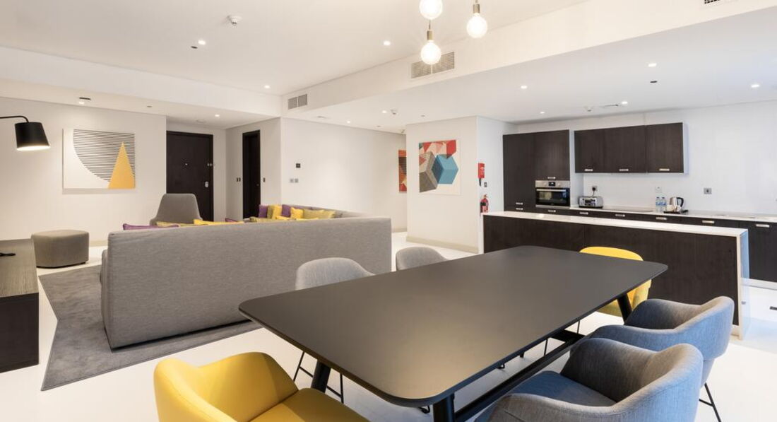 223 номери 23 м² та 42 м² та 100 апартаментів 72, 92, 150 м² з 1, 2 або 3 спальнями, міні-кухнею та пральною машиною