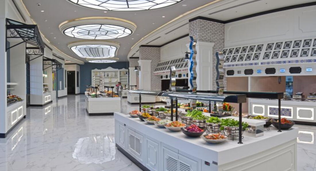 • ресторани a la carte: 6 (азіатський ресторан & Teppanyaki, мексиканський, італійський, турецький, рибний, барбекю - по резервації, платно, по 1 разу на кожен з ресторанів протягом відпочинку)