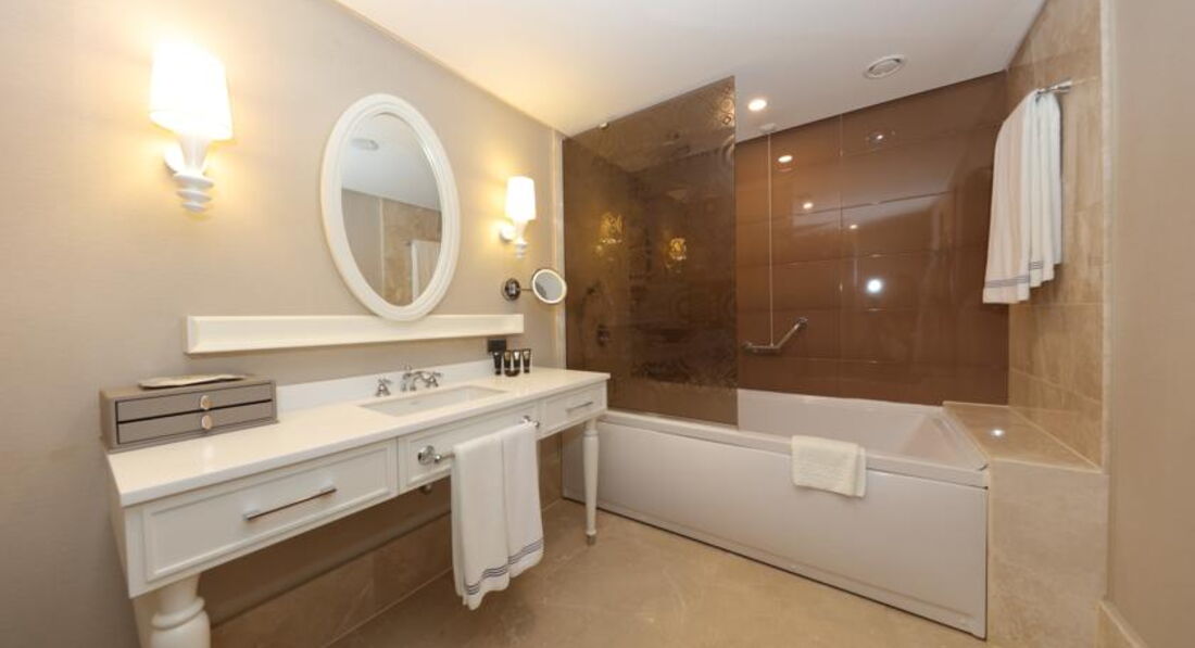 Отдыхали семьей в июне, мы с женой и двое детей 2 и 8 лет. Остались только положительные эмоции и приятные впечатления. Это тот отель в который стоит возвращаться при условии что сохранится все на том же уровне. Номера: шикарно обставленные и со вкусом оформленные, большая площадь, есть даже небольшая гардеробная, хорошая мебель, удобные матрасы и подушки. Питание, просто замечательное на любой вкус и цвет, начиная от стандартного набора блюд и заканчивая кулинарными шедеврами от шеф повара (по два эксклюзивных блюда каждый день), мясо кролика, индейки, телятина, говядина. Впервые вижу чтоб в отеле каждый день в меню были суши, причем очень вкусные. Соки хорошего качества, алкогольные напитки напитки опять таки начиная от стандартных и заканчивая широким выбором иностранных, виски большинство известных марок (джек, чивас, джони уолкер), текила аналогично, вино коньяк и т.д., пиво (эфес, карлсберг, бекс и миллер) Вообщем питание и напитки на высоте. Пляж большой и с хорошими навесами, места и шезлонгов всем хватает. Вход в море пологий, очень хорошо для тех кто с детьми. Большой пирс с шезлонгами и баром. Очень хороший аквапарк, по большому счету нет смысла даже ехать куда то специально в аквапарк, множество горок, на любой возраст. Особенно понравился аквапарк для малышей, дети не хотели оттуда уходить причем даже сын 8 лет. Детская комната опять таки на высоте, хорошее кондиционирование, комфортное и не навязчивое, очень красиво оформлено и с приятным персоналом. Вообщем отель заслуживает внимание. Единственное пожелание поднять чуть чуть уровень вечерних программ в амфитеатре, хотелось бы разнообразия. и почему то не было вечера отеля, как в других отелях, когда создается какая-то праздничная атмосфера в отеле вечером, но учитывая что отель только открылся думаю что вскоре и в этом плане будет все на высоте. Рекомендуем отель для отдыха всем независимо от возраста.