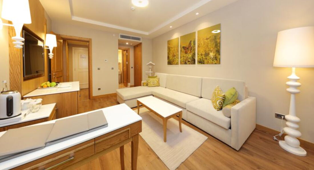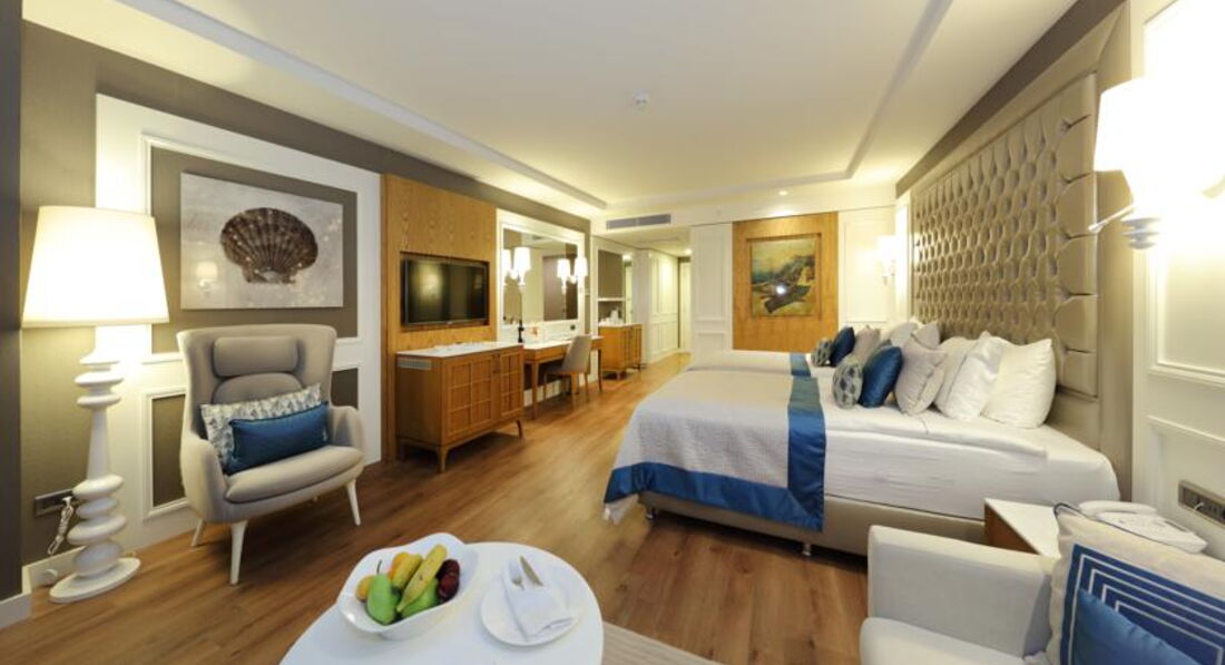 14 двокімнатних Deluxe Sueno Suite (вид на море, спальня та вітальня, басейн 30-38 м2, 2 ванні кімнати, макс. 4+1 чол., 70 м2);