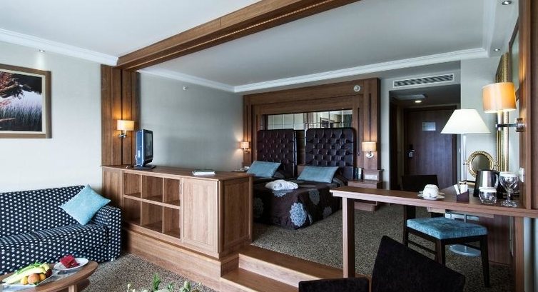 Отдыхали в Суено Гольф с 30 сентября, по 14 октября семья в количестве 6 человек, брали 2 номера, один стандарт второй сеньер. Номера довольно приличные по размерам, в стандарт добавили кровать для ребенка и при этом места было вполне достаточно, в сеньере был диванчик который разложили, на котором спал ребенок. Если есть возможность , то лучше брать номер сеньер во первых шикарный вид на гольф поля, во вторых номер разделен на зоны и получается если вы с ребенком, то находитесь как бы немножечко отделены . В номере хорошая ванная комната с набором для душа, именно с ванной, что так же хорошо если вы с ребенком . Большие шкафы для вещей с большим количеством плечиков (что очень приятно). Большой телевизор плазма по которому идут 4 руско-говорящих канала. Минибар каждый день пополняется. Большая кровать (что и просили) с мягкими комфортными подушками . Огромный балкон (был что в сеньере, что в стандарте) со столиком и 2 стульчиками и шезлонгом с мягким матрасиком. Очень важно, лично для меня, на балконе есть сушилка для вещей . Ремонт в номере нормальный, может и были какие то моменты, но мы отдыхали в конце сезона, и я думаю зимой все подремонтируют (в сезон гостиница заполнена на 100 процентов).