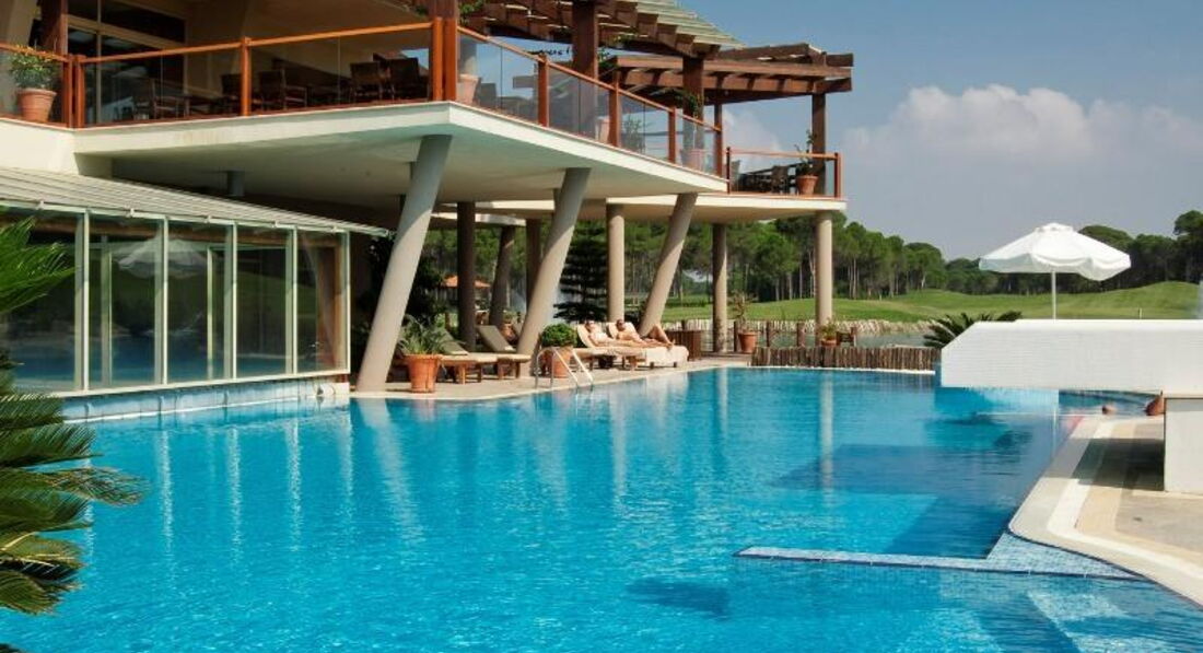 В этом отеле отдыхали 3 года подряд. Отель спокойный, толкучки нигде нет. Туристы: немцы 50%, 25% украинцы, 25% русские. Немцы, в основном гольфисты. Вокруг отеля очень красивая природа, А рыбы в прудах необыкновенные. Питание 5, уборка 5. Полотенца всегда кипельные. Минус : далековато от моря. Но до моря возят машинки, каждые 20 минут. Нас это не напрягало. Можно и пешком прогуляться.