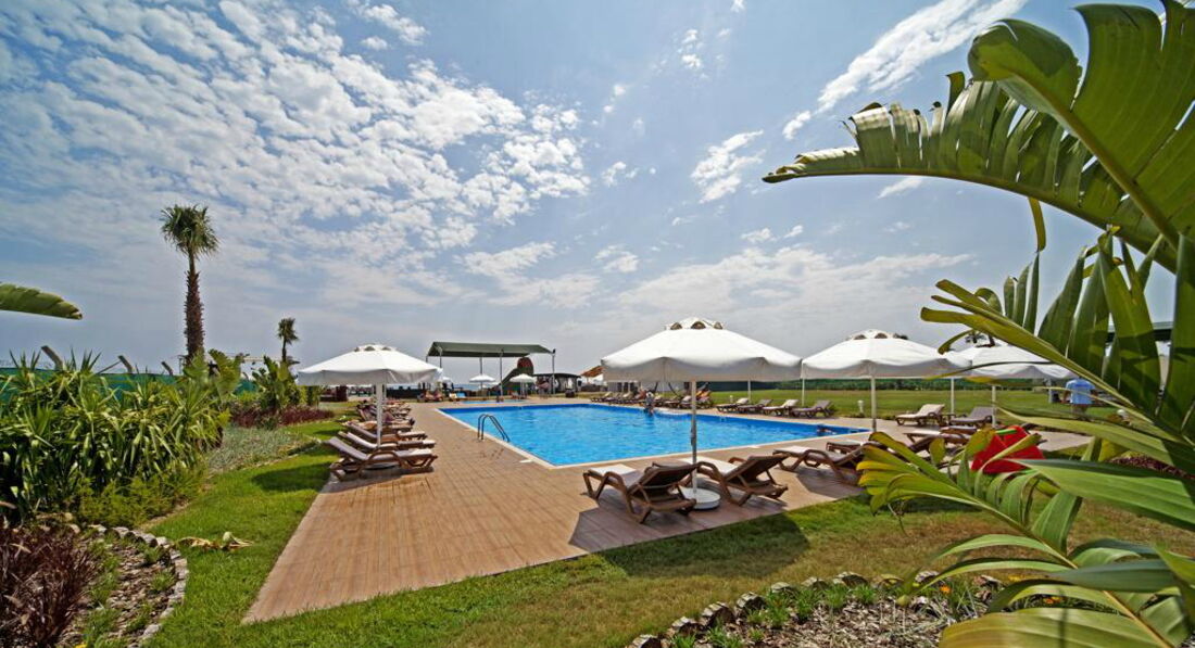 Замечательный отель, расположен не далеко от моря, так же есть место где на территории можно просто погулять и насладиться свежим воздухом!) Пляж чистый, много шезлонгов. Персонал приветливый на любую просьбу сразу же реагируют и помогают. Питание очень хорошее большой выбор мяса!) С алкоголем тоже всё в порядке большой выбор зарубежного. Номера большие и светлые. В общем если в коротко то всё там сууупер!!!)))