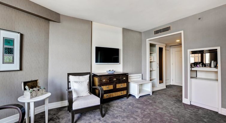 Типи номерів: • 79 Sea view standard room, номери площею 35 м ²; • 26 Garden view standard room, номери площею 35 м ²; • 2 номери для людей з обмеженими фізичними можливостями; • 18 Island Suites, номери площею 40 м ²; • 7 Suite, номери площею 60 м ²; • 4 Family Suite Room, номери площею 60-70 м ²; • 4 Superior Room, номери площею 35 м ²; • 4 Presidential Suite, номери площею 90 м ².У номері: • телевізор; • супутникове телебачення; • телефон; • балкон/тераса; • набори для приготування чаю/кави; • ванна кімната; • фен; • міні-бар; • кондиціонер; • сейф.
