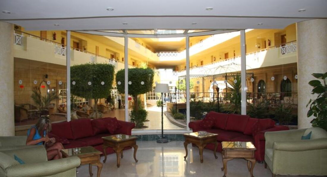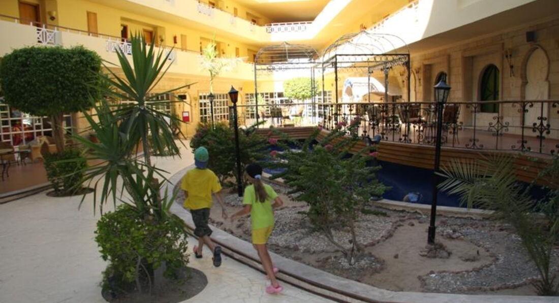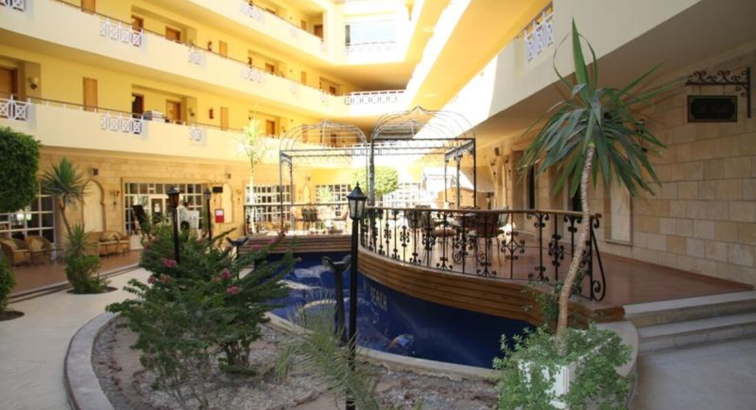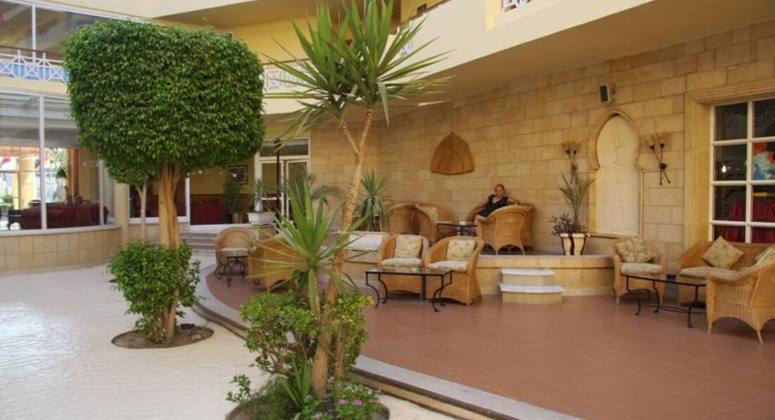 После бракосочетания решили махнуть с мужем и родителями в Египет, отель выбирали из горячих предложений, вроде не так все было запущенно, так как периодически куда-ни будь летаем сразу подготовила близких к тому, что сервис в стране очень упал и суперских запросов ни у кого что бы не было. Подготовились и полетели. По прилету проблем не возникло разместили быстро, но номер оставлял желать лучшего, я даже не о том что сан узел мечтал чтоб его помыли, и убрали, я о том что при открытии балкона поднималась такая вонь канализации, что даже выходить не хотелось. Днем после моря возвращались воды холодной не было кипяток из душа фигачил, пару раз чуть не обварились, за то вечером горячей воды не было, холодная бежала. Об уборке номера приходилось ходить и просить, так как неуловимые уборщики не понятно в какое время ходили убираться, и с какой частотой. Кондиционеры в отеле раньше 6 часов вечера не включали экономили якобы, а туристы сидите в духоте наслаждайтесь. Wi-fi только в холле отеля, это нас устраивало, правда были постоянные проблемы с интернетом, хоть под роутером сиди не помогало. Воду в отеле питьевую не давали туристам, можно было наливать с кулеров которых было в отеле только 3, и подключены они были к местному водопроводу, и после 10 часов воды взять было негде. Бар в котором стоял один из кулеров закрывался, ресторан уже не работал там стоял второй и третий в баре не пляже как правило был уже отключен, приходилось покупать воду. Но и к этому мы были готовы. Нас поразил факт обслуживания в ресторане, приходим первый раз обедать, столовых приборов нет, спрашиваем, на нас фыркнули так мол стойте и ждите, мы подождали, так вместо того чтобы принести культурно сложить в специальный лоток, нет приходит официант, швырнул приборы так что половина из того что он принес вывалилась на пол. Кормили не могу сказать что плохо, овощей мне не хватало, за то травы в изобилии, мясо и рыбу давали не часто, но было, голодными не ходили. Единственный наверно плюс отеля это суп-пюре на обед и на ужин очень разнообразные. Правда вечерами когда выходили ужинать на террасу,постоянно проводилась обработка территории какой-то химией от ящериц и другой нечести. Теперь о пляже и море: на пляже бетон в волейбол играя отбили себе все ноги, несмотря на обувь, о море -небольшая бухточка, очень не удобно купаться, разве только детям подойдет причем во время прилива, а во время отлива пешкадралить по мелководью и хреновому дну приходилось чтоб поплавать. Если бы не хорошая компания,которая у нас так замечательно подобралась мы бы с ума сошли там, т.к. территория у отеля маленькая сходить кроме бара не куда. Ходили гуляли рядом с отелем, по соседству есть не большой район с магазинами, но очень много площадей пустует. Спасали себя экскурсиями которые нам предложил тур оператор. Не тянет отель на заявленную четверку, максимум тройка.