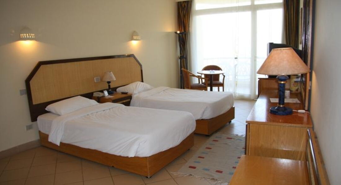Были в отеле парой в январе 2015 года,прилетели поздно, поэтому заселили сразу. Номер обычный, ничем не примечательный,даже фен был, только сушиться им можно было полчаса ,но при этом не высохнуть? Территория не маленькая,ухоженная.Пляж отвратный,море скорее напоминает лужу,но когда отплываешь подальше,тогда уже начинаешь ощущать,что ты действительно в красном море плаваешь. Питание,вот где отдельный пункт,утром во время завтра в основном всякая зелень,салаты,оливки ну и яйца всех видов,но для того ,чтоб получить глазунью и омлет,нужно очередь минут на 10 отстоять,так ещё и кладут,как украли,по 2 яйца,мне то норм,а вот моему мужчине мало было,а когда просишь пожарить больше яиц на одного,то глаза у повара становятся такими круглыми и удивлёнными,но не хотя делает.На обед/ужин та же история, только с мясом на гриле/рыбой и т.д. так же огромная очередь и невидимый кусочек,тут признаться,даже мне было мало)) Алкоголь ужасный,как в принципе и стоило ожидать от Египта ,лучше брать с собой из дьютика,тоже касается соков (типа юппи/инвайт) лучше пить водичку.И внимание,они моют одноразовые стаканы,это ппц!