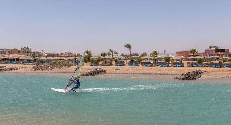 Готель Lagoon Beach (лагуна). Гості також можуть користуватися пляжем Zaytouna Beach (на березі моря) – піщано-гальковий, до глибини 150-200 м, є корали, понтон, трансфер на човні безкоштовно.