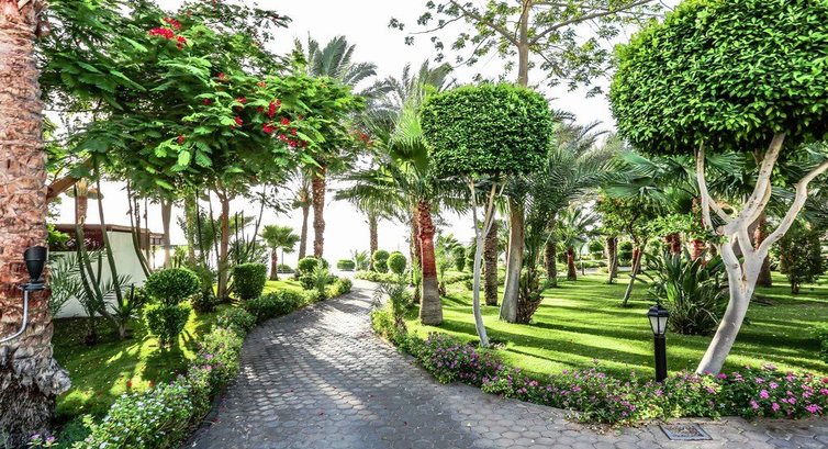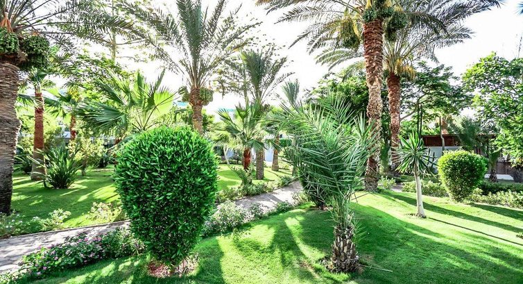 Територия отеля очень ухоженная, яркая, чистая, с большим количеством всемозможных деревьев и цветов. На територии ездит Таф-таф, от рецепшина - до пляжа и назад.