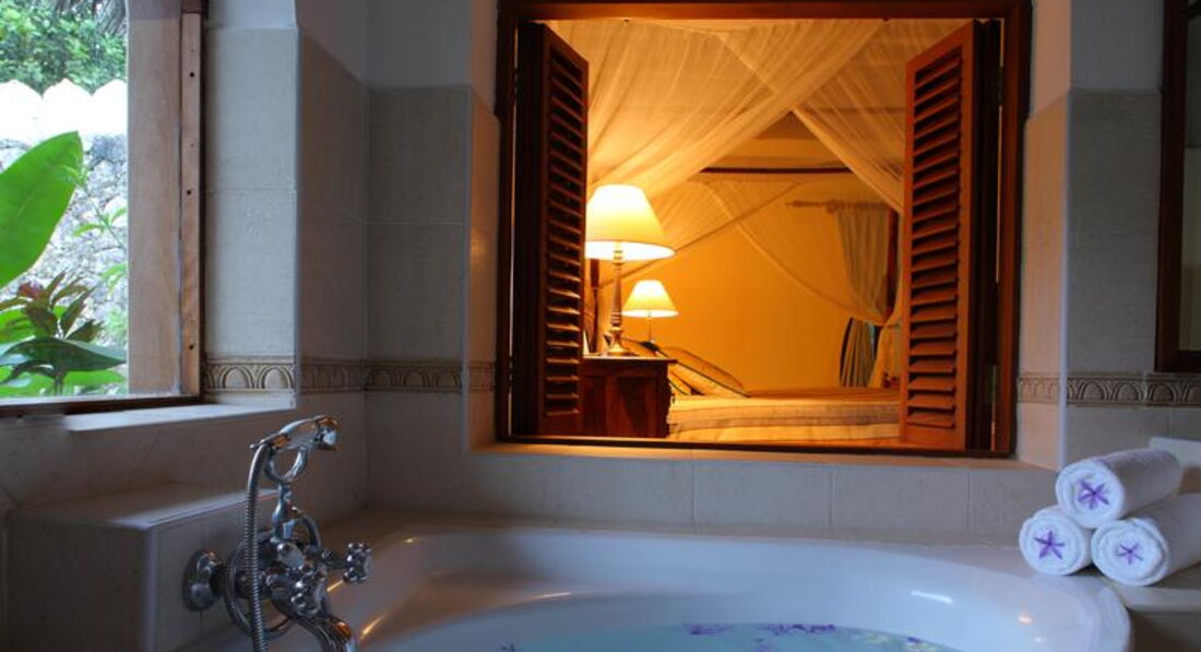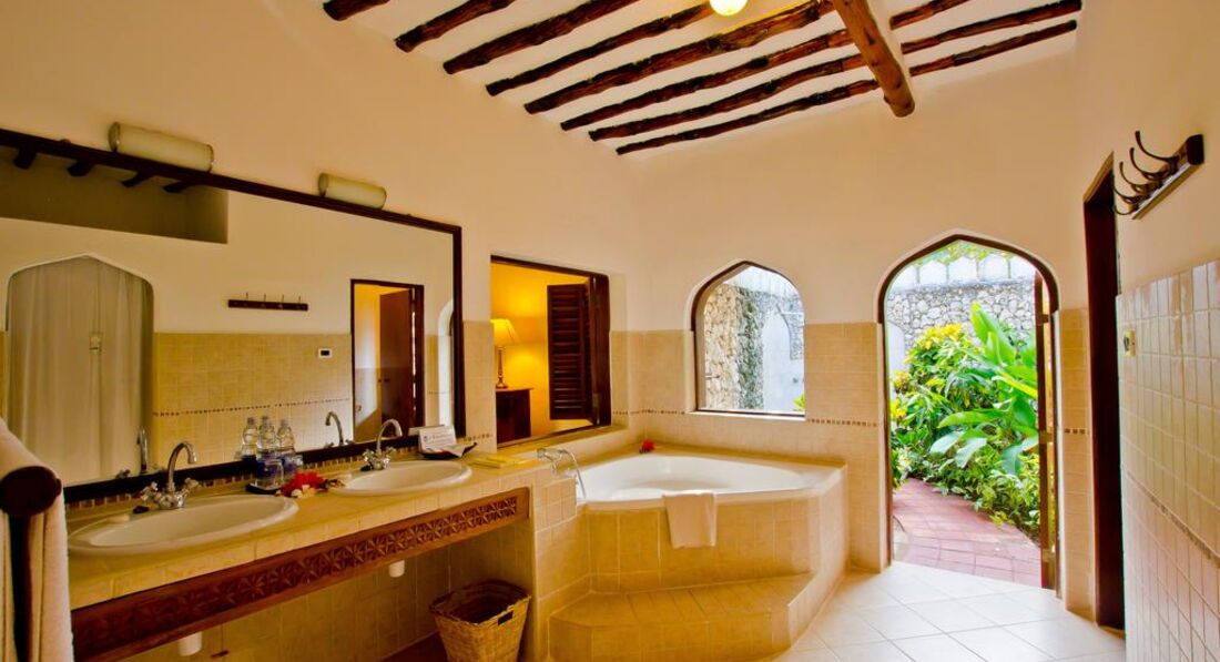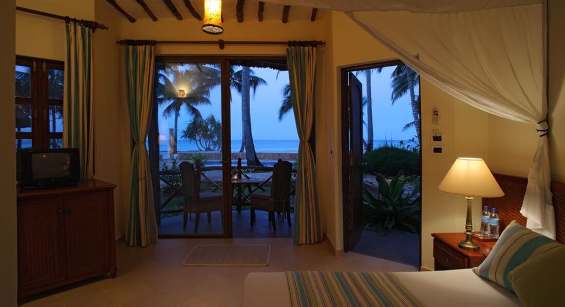 20 Sea Front rooms (Bahari) (Номери, розташовані прямо на пляжі з видом на море. У номерах є просторі веранди та власний приватний басейн. Спальня з великим ліжком або двома односпальними ліжками з москітною сіткою, диван-ліжко. Усі хати оснащені кондиціонером та обставлені занзибарськими меблями.У вітальні зоні встановлений телевізор з плоским екраном і супутниковими каналами.)