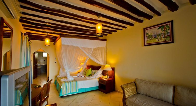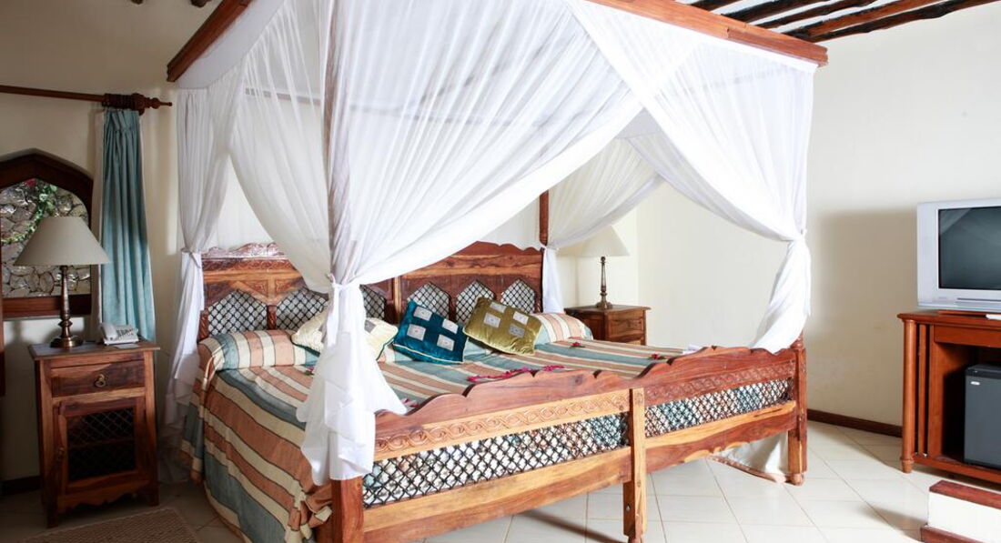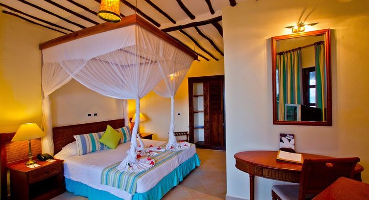 56 Standard rooms (Pwani) (Номери розташовані в одноповерхових традиційних Рондавелях (традиційний круглий будинок) кожен з двома оформленими номерами з окремими зонами, що ведуть у чудово обладнані ванними кімнатами з душем. Спальня з великим ліжком або двома односпальними ліжками з москітною сіткою ліжко. Усі хати оснащені кондиціонером і обставлені занзібарськими меблями.У вітальні зоні встановлений телевізор з плоским екраном і супутниковими каналами.)