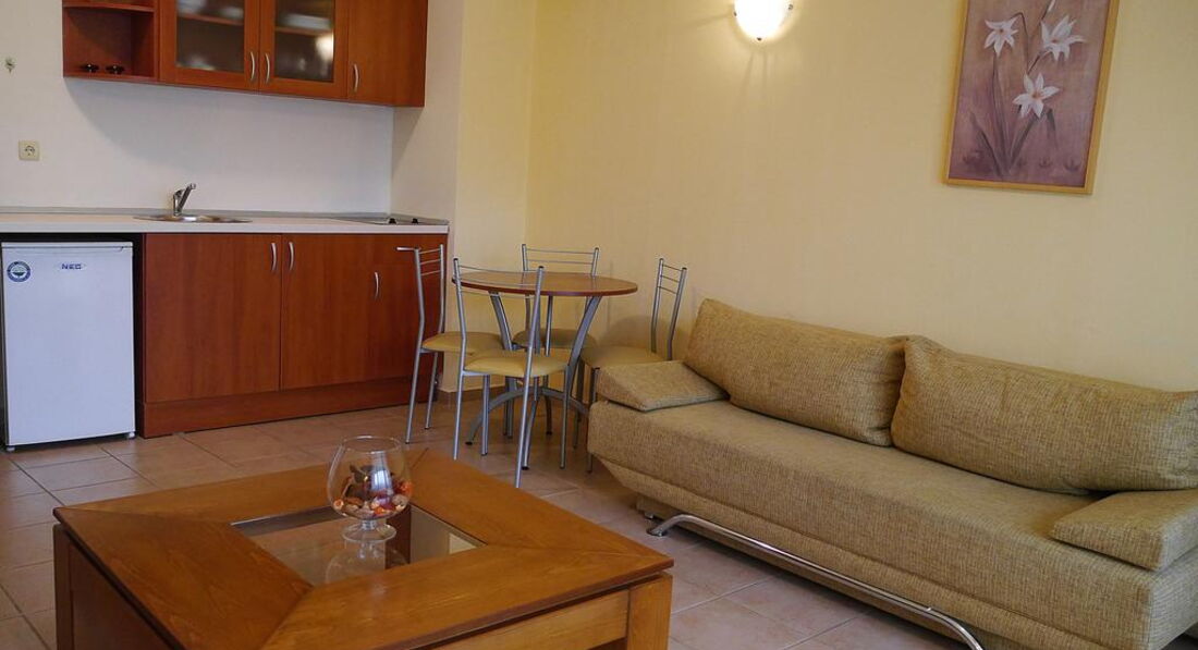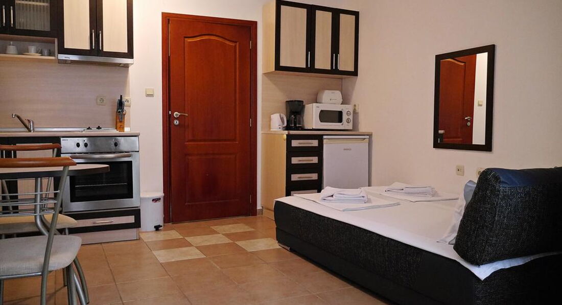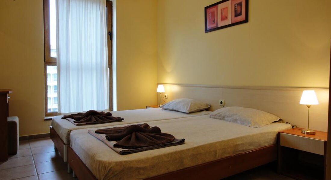 Розташування: до моря 300 м, 2 км до центру курорту "Сонячний берег", 5 км до античного міста Несебр, 35 км до аеропорту Бургас.