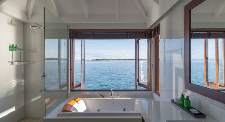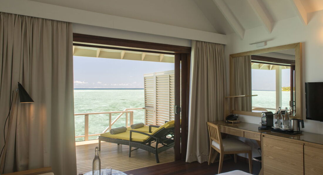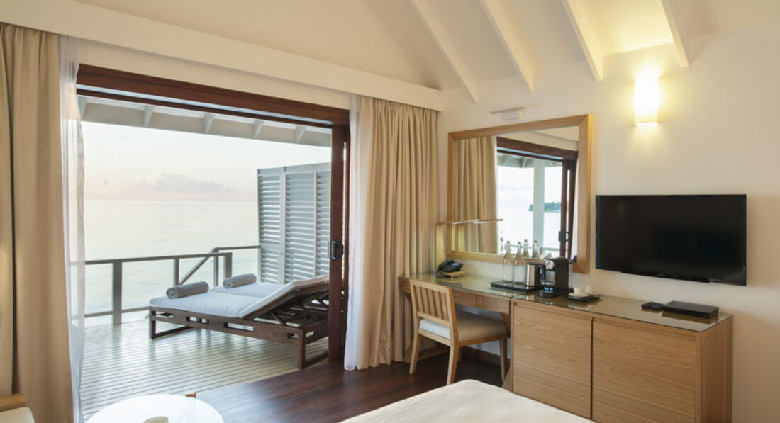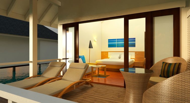 20 Water Villa (45 кв.м., простора і світла вілла, яка знаходиться на воді з великою терасою і прямим виходом до лагуни. У номері знаходиться велике двоспальне ліжко, ванна кімната з джакузі та тропічним душем, і туалетним приладдям.),