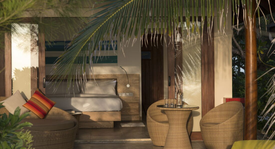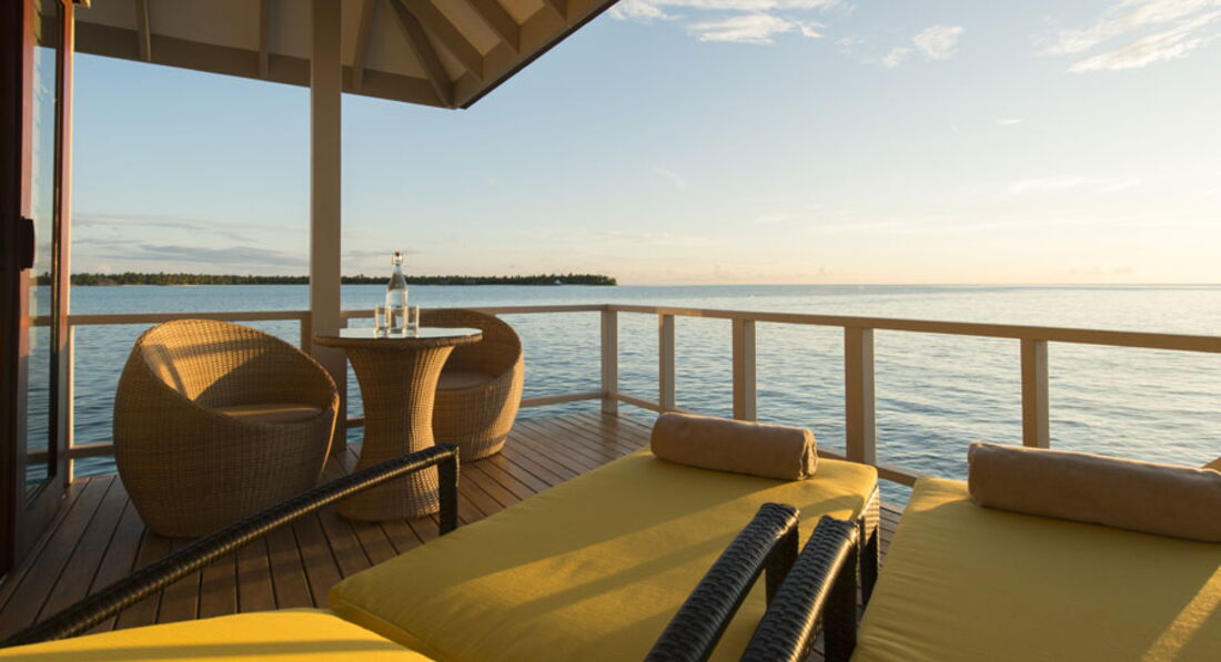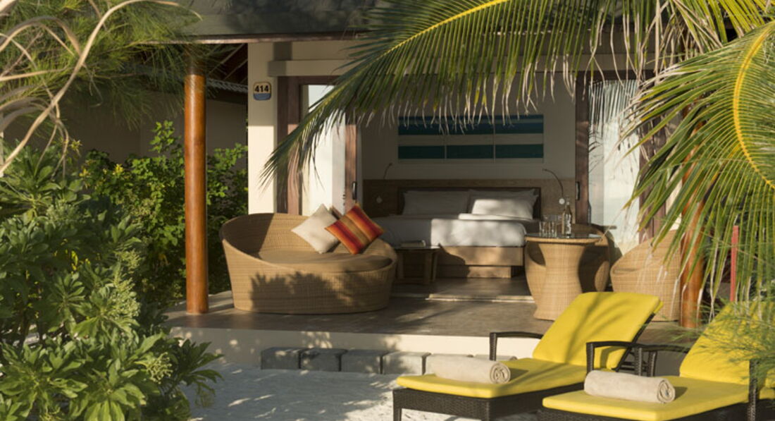 Наше бунгало 381 было настолько близко к воде, что во время приливов казалось что ещё чуть -чуть и ты дотянешься рукой. Терраса с круглой кушеткой, где свободно поместятся лёжа три человека, столик и два кресла. Все эти приятные мелочи очень радовали нас весь отдых. Когда другие гости отеля лежали на шезлонгах и пытались найти тень, мы лежали на своей терассе в 10 метрах от моря и наслаждались безумно красивыми видами океана.