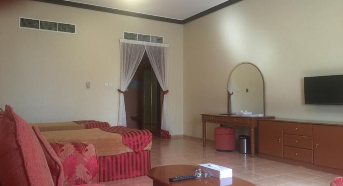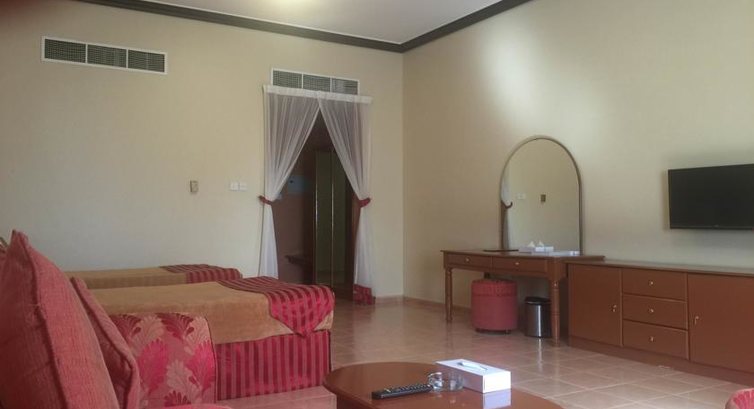По прилёту в аэропорт Дубая принимающая сторона 1,5-2ч. не могла дождаться 2-ух пассажиров. По крайней мере, так нам сказал её представитель. Было похоже на ожидание ещё одного рейса, дабы уместить большее количество туристов в один автобус (подобное уже случалось на другом курорте). После услышанной с нашей стороны претензии о чрезмерно длительном ожидании в аэропорту, представитель кому-то позвонил и вскоре нас привели к микроавтобусу, после чего теория с рейсом была опровергнута. Наверное, были проблемы с самим транспортом. Внешний вид ресепшна немного озадачил. Дали ключи от номера без балкона, мы стали просить с наличием такового, на что нам ответили, что они все заняты. Пошли смотреть номер и уже там, поговорив с провожающим, удалось таки заселиться в весьма немаленький балконный (вид на деревья пустынного двора), предварительно попросив в него третью кровать, за двухдолларовое вознаграждение. Успели на ужин, который, как выяснилось, аж до 22.30. Паспорта на время отдыха попросили оставить на ресепшне.