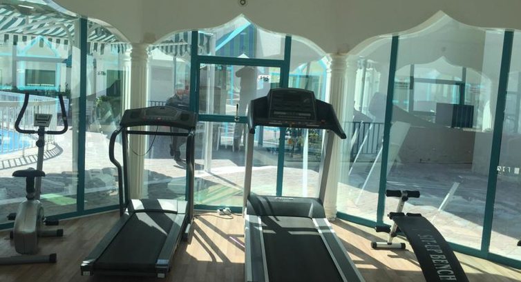 Теперь по самому отелю. По приезду все туристы попадают в так называемый тренажерный зал. Он же и комната отдыха, и переговорная. Ресепшен, как таковой, в данном отеле отсутствует. Это очень неудобно, особенно, если большой заезд. Люди вынуждены толпиться со своим багажом в маленьком душном помещении.