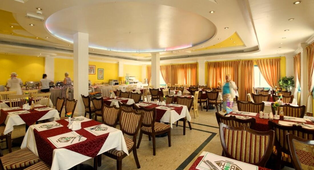 Питание в отеле у меня были только завтраки. Завтраки проходят в форме «шведский стол»: вкусные и разнообразные. Обедала и ужинала в разных местах, но больше всего в ресторане Kazan, он находиться прямо напротив отеля в отеле All Seef hotel, Слышала, что владелец ресторана выходец из России, поэтому здесь представлена русская и татарская кухня. Мне понравилось, что тут вкус еды как дома, так как арабская кухня надоедает. Порции большие, цены недорогие. Официанты встречают, наливают воду. Здесь безумно понравился торт Наполеон и плов. Еще когда собиралась на пляж, покупала здесь выпечку: беляши, чебуреки, пирожки и т.д., чтобы перекусить.