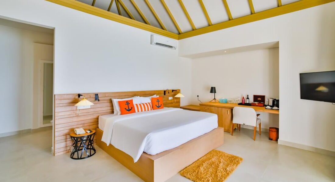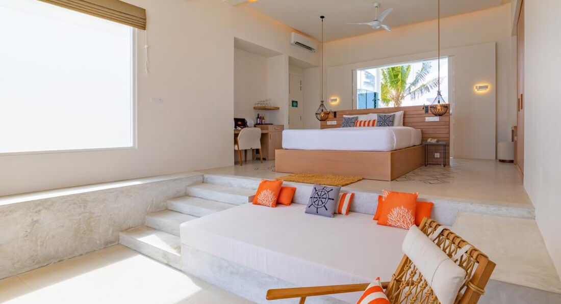 • 1 Grand Ocean Suite (175 м², макс. 4 або 2+2 особи). Водяна вілла. Спальня з ліжком king-size та зоною вітальні, ванна кімната з ванною та душем. Тераса з приватним басейном та прямим спуском у воду
