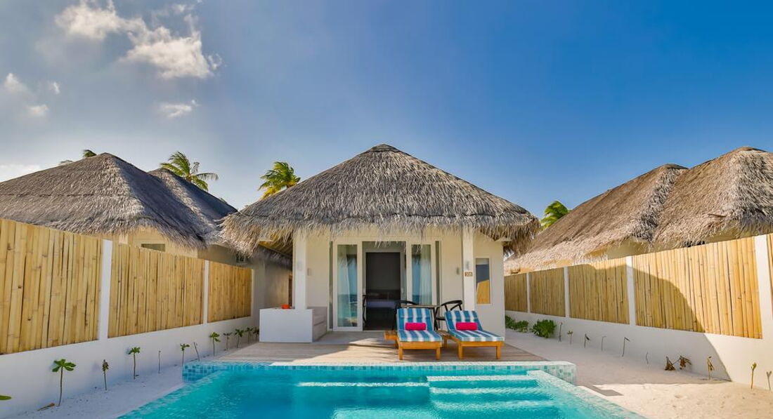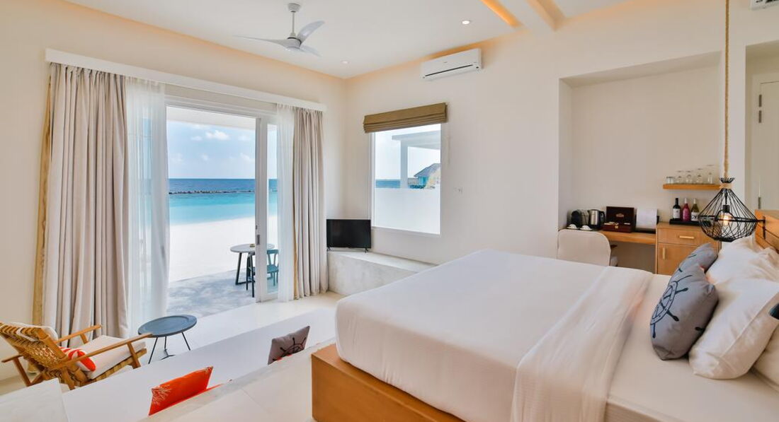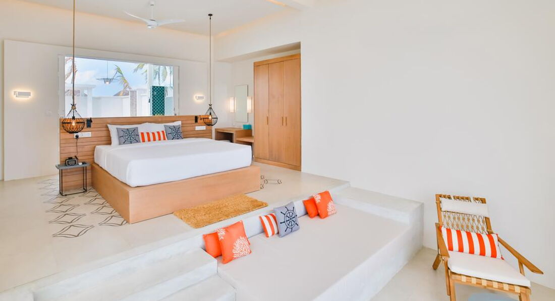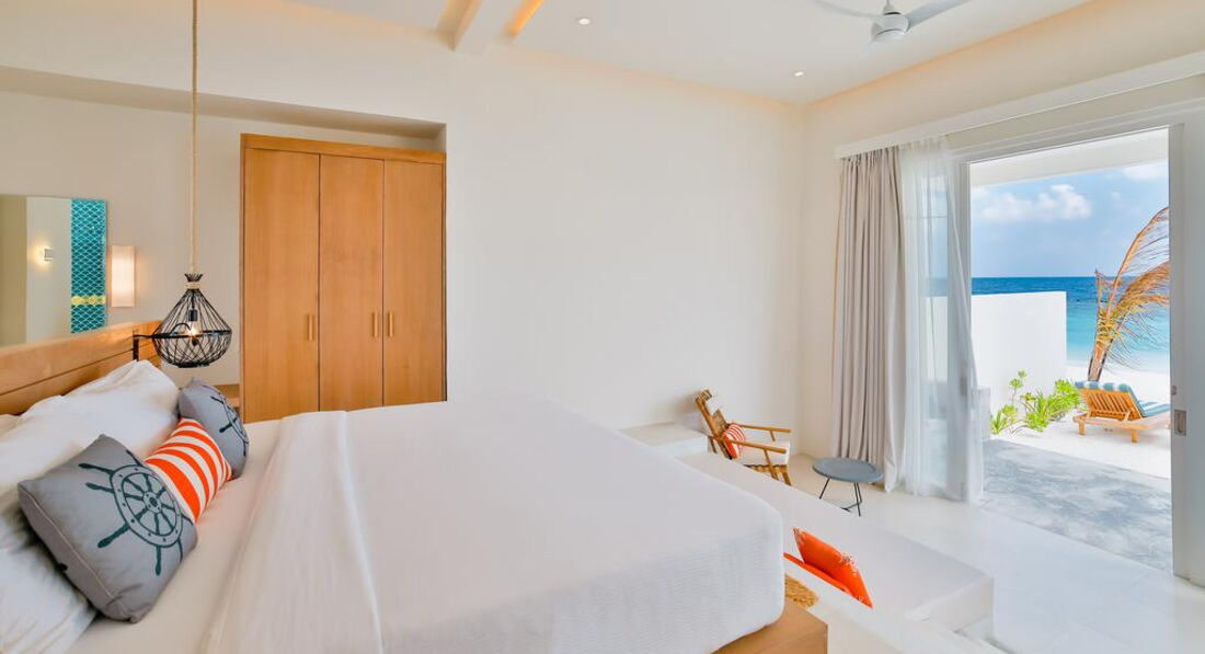 • 1 Grand Beach Suite (194 м², макс. 4 або 2+2 особи). Берегова вілла. Спальня з ліжком king-size та зоною вітальні, ванна кімната з ванною та душем, приватний басейн. Тераса з видом на пляж