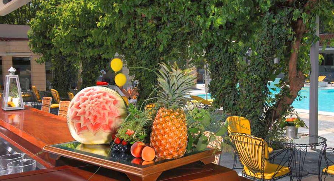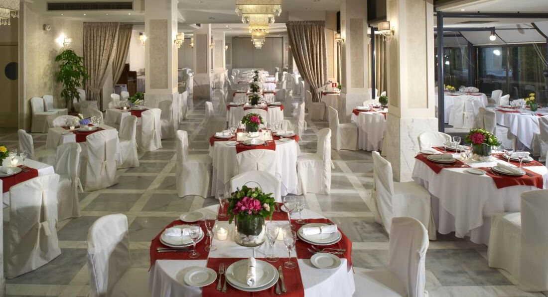 Територія та послуги: Автостоянка Бар: центральний бар, бар біля басейну Ресторан: 2 ресторани Таверна Інтернет: безкоштовний Wi-Fi в номерах, інтернет-куточок. Конференц-зал: 3 конференц-зали (до 220 місць), 3 банкетні зали Обмін валюти Обслуговування номерів Сейф на рецепції Трансфер: трансфер до центру міста (за запитом - за доплату) Хімчистка/пральня Послуги пральні Розваги та спорт: Басейн Живлення: Сніданок (BB), Сніданок, вечеря (HB) Пляж: Піщаний пляж за 150 м від готелю. До оплати приймаються кредитні картки: Visa, MasterCard, Diners, Amex.
