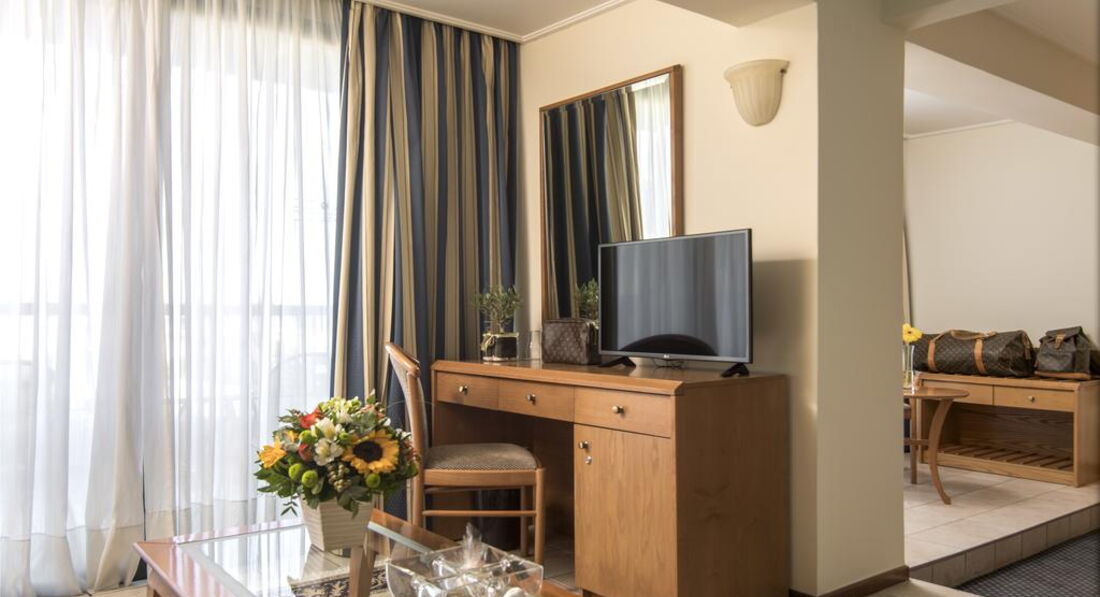 Економічний готель поблизу Салонік, в прибережному районі Агія Тріада. Простота стилю, номери із сучасними зручностями, ресторан, бари, басейн, конференц-центр, інтернет, гарний сервіс. До послуг гостей торговий центр Космос. Ідеально підходить як для спокійного сімейного відпочинку, так і для молоді.
