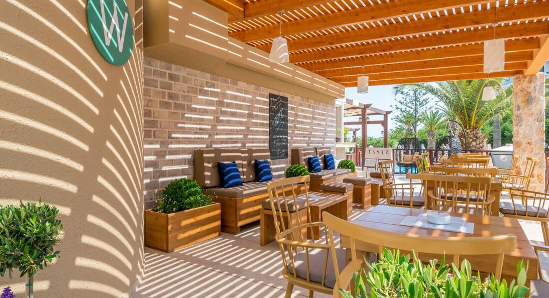 • а ля карт ресторан dionysos - Цей ресторан з вибором страв з меню Dionysos розташований поряд з 3 басейнами в будинку Aparthotel, і в ньому подається сніданок, обід та вечеря у справжній курортній атмосфері. Ресторан розрахований на 200 осіб та пропонує ретельно збалансований вибір страв на будь-який смак, а у власному барі на терасі можна випити свіжі соки, фруктові, прохолодні та алкогольні напої. Тематичні вечори зі «шведським столом» та розвагами організовуються кожну середу (грецький вечір) та п'ятницю (вечір барбекю), і місця на них можна замовити у самому готелі