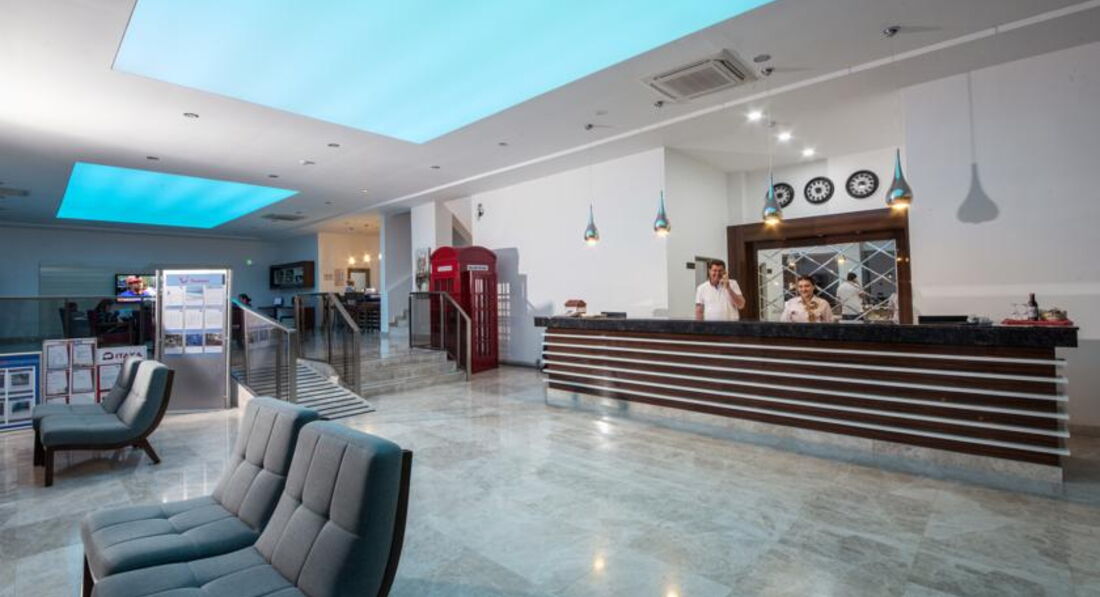 ЗАСЕЛЕНИЕ: Приехали в отель в 11.30, через час получили ключи от номера. Я попросил на ресепшене у турка номер не на первом этаже и с двуспальной кроватью. Его мы и получили. Хотел ему дать 10 долларов, но так и не собрался. Днем на ресепшене присутствует очень любезная русскоязычная девушка, с ней решали текущие вопросы.