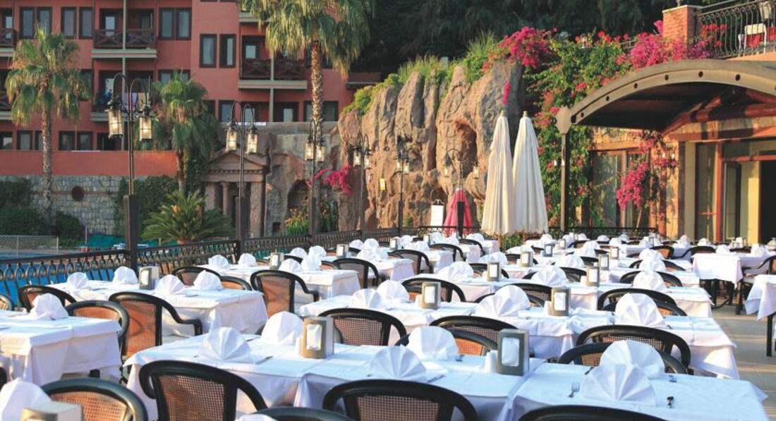 Бари та ресторани: головний ресторан розрахований на 750 осіб (літня тераса, дитячі стільці), бар біля басейну (10:00-24:00), teras bar (18:00-24:00).