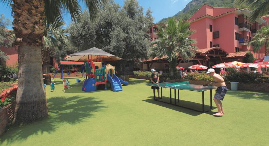 Номера небольшие,мебель старая,у нас был второй этаж .Около бассеина очень шумно.В отели очень много народу,в основном англичане с кучей детей.Кормили нормально,есть очереди.Пляж отеля голубая лагуна, туда возят на бесплатном автобусе в 10.00 и забирают вечером.Еда и напитки платные. Там дно песок и без волн.Отель находится в поселке Олюдениз,центр парапландинга, очень много народу, бары и кафе ,рынок вещи плохие,хорошие аптеки.Отдыхают в основном англичане.Можно ехать,но для этого отеля цена на неделю сейчас очень завышана ,не стоит этих денег.