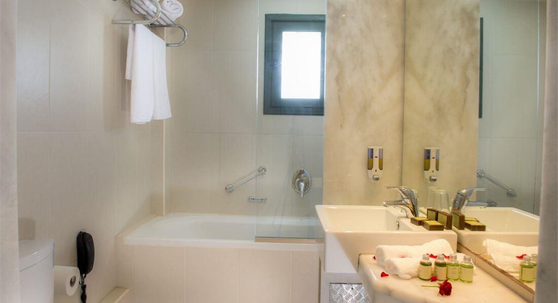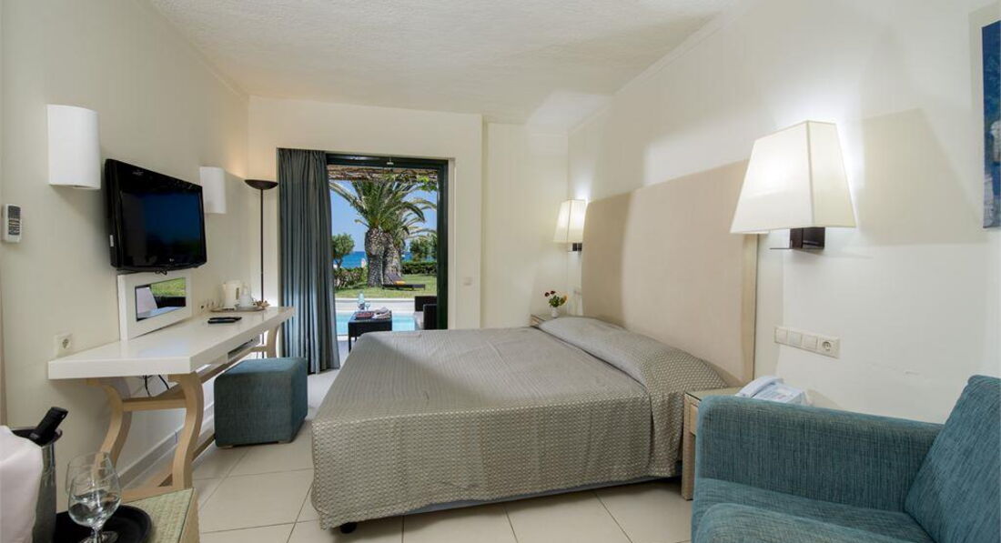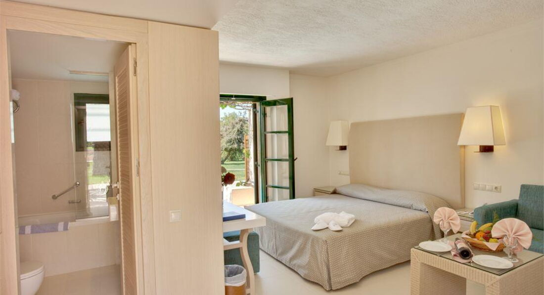 Suite 1 Bedroom GV (30м2., макс 3+1 дит або 2+2) Номер складається з однієї спальні з двоспальним ліжком та окремою вітальнею та мармуровою ванною кімнатою. Усі номери мають балкон. Як додаткове місце диван-ліжко.