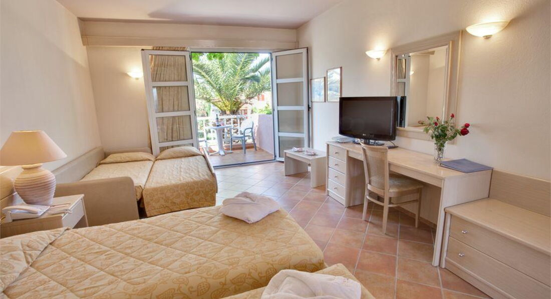 Family Bungalow GV (27 м2., макс 3+1 дит або 2+2) Усі номери відремонтовані та оновлені. У номері є 2 односпальні ліжка і 2 дивани-ліжка або розкладачка. У номері є балкон або тераса з видом на сад.