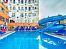 Территория: ее практически нет. Бассейн с горкой, зона около бара, дорожка ко входу и крошечная детская площадка - вот и вся территория.