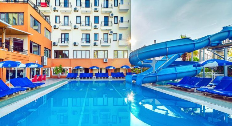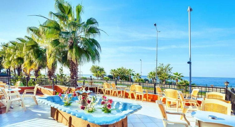 Первый раз поехали на море с любимым. Так получилось, что попали именно в этот отель на 10 дней. И первое когда мы зашли в номер-мы увидели грязный пол, пришлось просить, чтобы вымыли. Летали с 19 по 29 октября-конец сезона. Народу было с каждым днем все меньше. Море классное, пляж грязноватый (бутылки, окурки), заход в море это вырез из камней, т.е. по бокам большущие камни. Территория отеля небольшая, но все рядом: бар, бассейн, море через туннель. Бассейн супер (чистят каждое утро), водные горки включали один раз в день в 16 00 на полчаса. Что касается еды и напитков: в баре бесплатно пиво,вино,джин,водка,ром. Никаких раков не было как написано. Закуски это лепешки, они вкусные, но на руки человеку дают только одну тарелку и там три тоненьких кусочка, ладно хоть можно было подойти и еще потом взять. Поначалу ходили в их ресторан и каждый день смотрели пробовали что дают. Но потом стало понятно-все одно и то же. Завтра: омлет, вареные яйца, булочки и разные виды сыра ну и колбаска два вида. Кукурузные хлопья с молоком, йогурт и творог. И так каждое утро. Обед и ужин это плов, рис с изюмом, курица, кусочки курицы в соусе, с грибами, много огурцов и помидоров, зелень, макароны, брокколи, капуста, рагу с картошкой, картофель в мундире. Вот в основном все это и давали в течении 10 дней. Из фруктов только яблоки и апельсины. Десерты это торты, пирожное, печеньки, пудинг. Кофе и чай вкусные. Анимации вообще ноль! 4 дня с детьми танцевали а потом вообще перестали. Дети ходили сами себя развлекали. В 23 00 закрывают бар, выключают музыку, да еще и на улице не дают посидеть. Может то что народу не было, но все равно не понравилось так как мы приехали отдохнуть. Магазин в отеле очень дорогой, ну это и понятно. Рядом есть магазины лучше там покупать. Ну в общем отель на 4 * точно не тянет! Ну 3 еще может быть. Сравнивать не с чем, но для 1 раза мы хорошо отдохнули. Но в этот отель мы уже точно больше не поедем :)