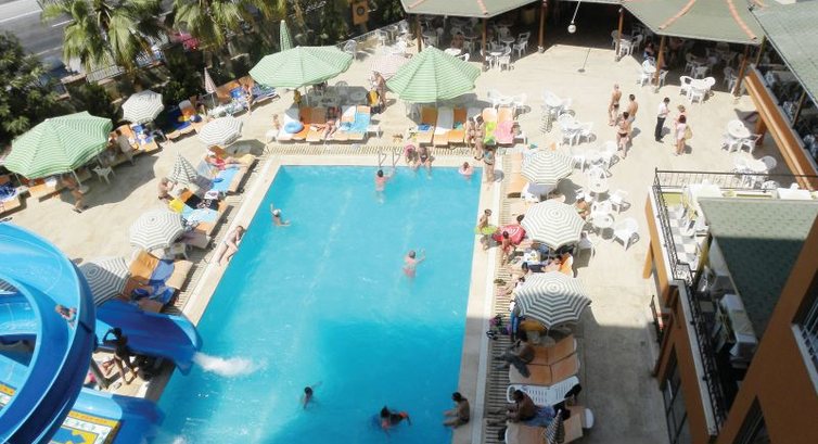 Отдыхали в данном отеле с друзьями. Хуже отеля я не видела(в Турцию ездим каждый год)!!! Решили с друзьями сэкономить и очень об этом пожалели,после трех дней прибывания даже хотели поменять за доплату отель.Ну,а теперь по порядку: заселили быстро,номер был нормальный на 5 этаже с видом на море(10$ положили в паспорт при заселении). Территория очень маленькая.Питание просто УЖАС!!! Вместо мяса была сплошная соя, в обед и на ужин за которой нужно было отстоять очередь и теперь внимание!!!положить себе в тарелку сколько хочешь НЕЛЬЗЯ, на раздаче стоит повар,который и решает сколько тебе положить в тарелку сои!!! Через дней пять такого прибывания человек 30 из отеля пошли к управляющему выяснить,когда появится МЯСО!!! Персонал и сам начальник вели себя очень агрессивно,типа"что вам не нравится?",но мясо все же появилось. Девушки голодные не останутся,а вот мужчины очень страдали. Спасло ситуацию то,что отдыхали компанией и через день ездили на экскурсии,так что в отеле времени проводили мало. А вечерами ездили гулять в Аланию,там и ужинали. Больше на отеле мы не экономим!