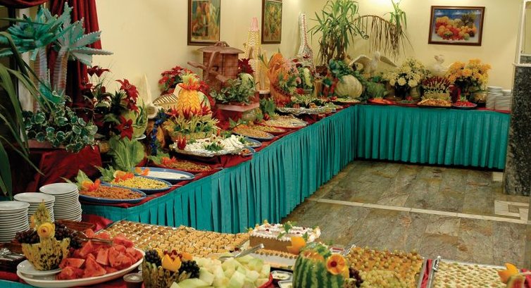 Бари та ресторани: Сніданок з 07:30-09:00, Пізній сніданок з 09:00-10:00, Обід з 12:30-14:00, Вечеря з 19:00-21:00, Пізня вечеря з 23: 30-00:00. Шведський стіл. Ресторан розрахований на 120 осіб на відкритому повітрі та 150 осіб у приміщенні. Бар біля басейну: легкі закуски з 10:00-17:00 (фіксоване меню), час чаю з 17:00-17:30 (фіксоване меню), години роботи з 10:00-01:00, з 19:00- 20:00 бар не працює; Бар у ресторані: пропонуються прохолодні та алкогольні напої місцевого виробництва (тільки пиво та вино).