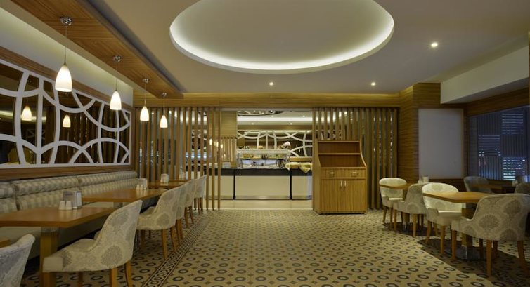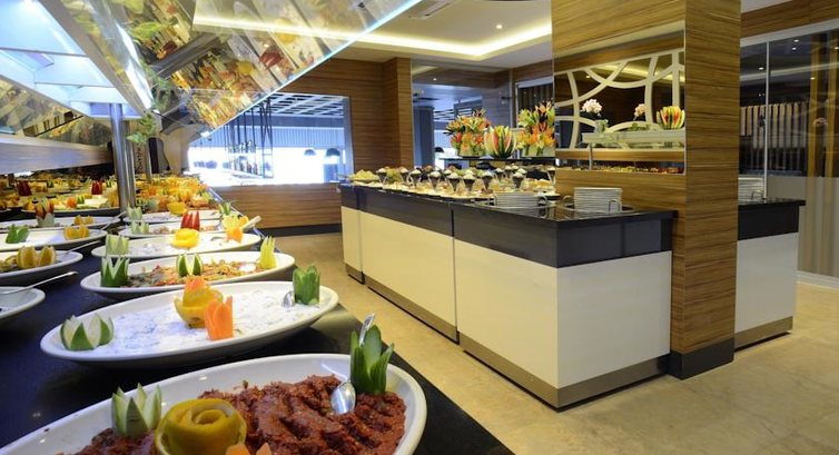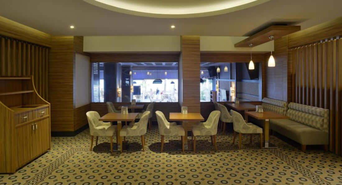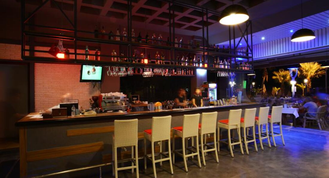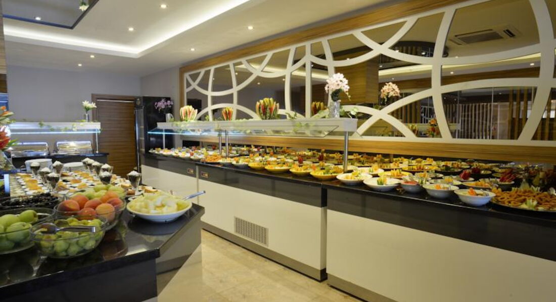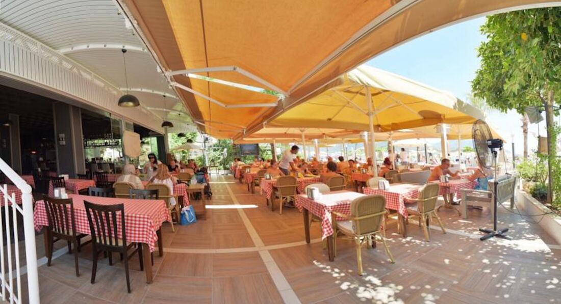 головний ресторан розрахований на 250 осіб (критий, з кондиціонером, літня тераса, дитячі стільці), бар біля басейну (10:00–22:30), диско-бар (10:00–03:00).