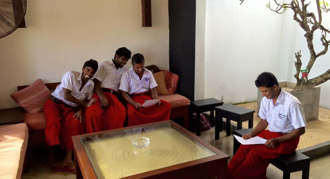 В отели мы были практически одни (видимо повезло) и вся терраса была в нашем распоряжение (нас никто не беспокоил), было ощущение полного релакса. На выходные приезжали местные жители из центра Шри-Ланки на отдых, но мы с ними пересекались очень редко, здороваясь при встрече.